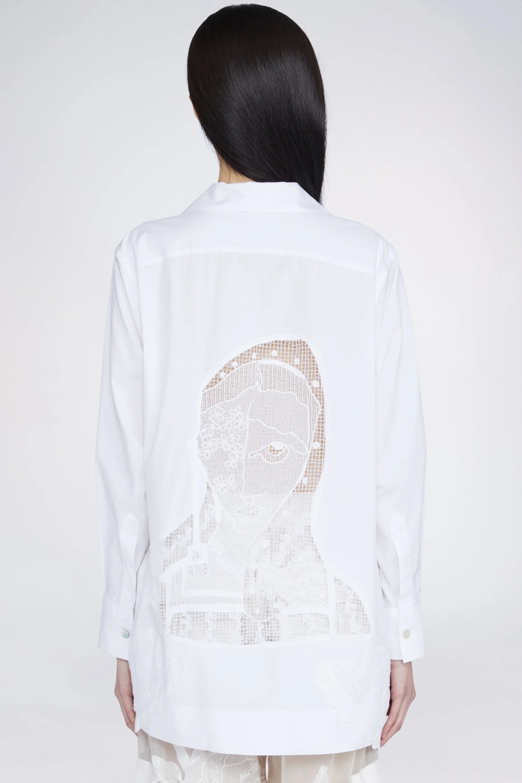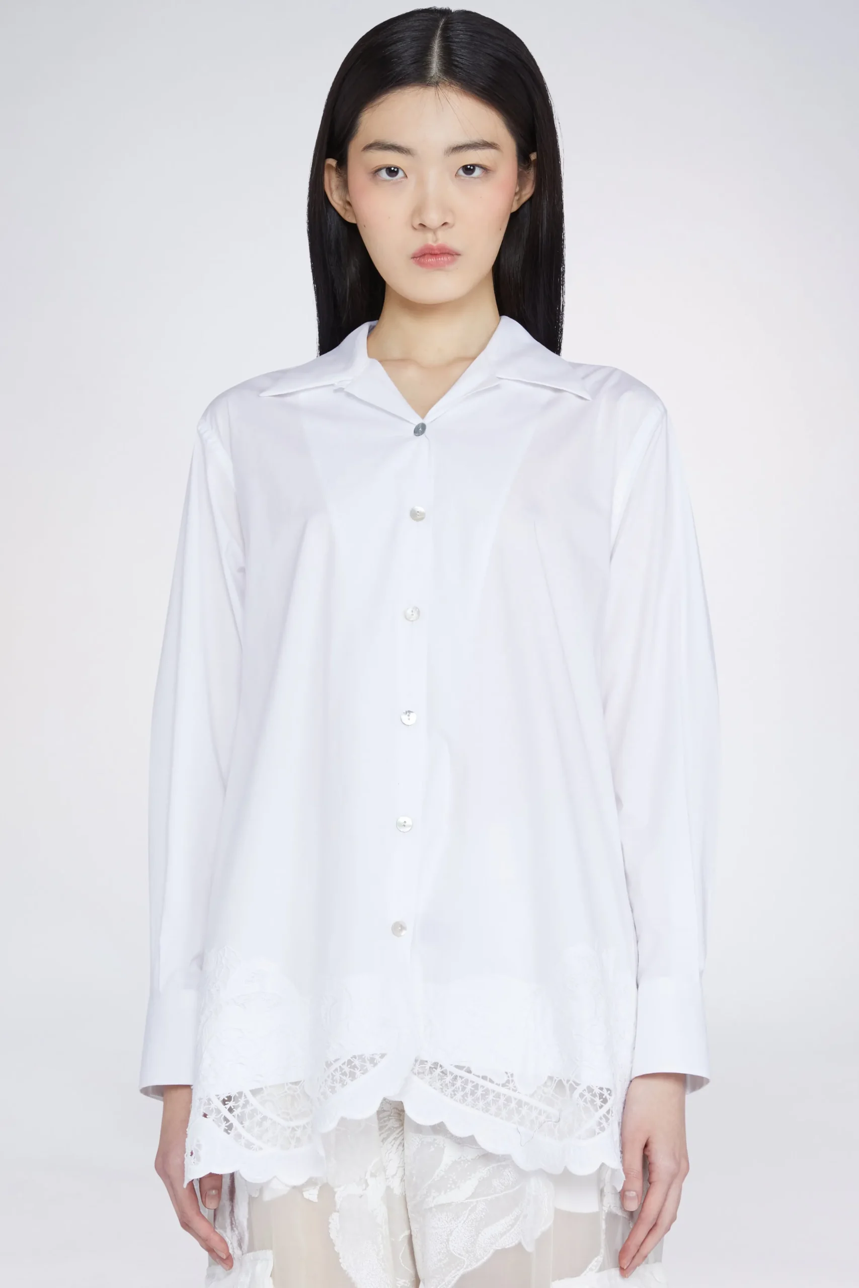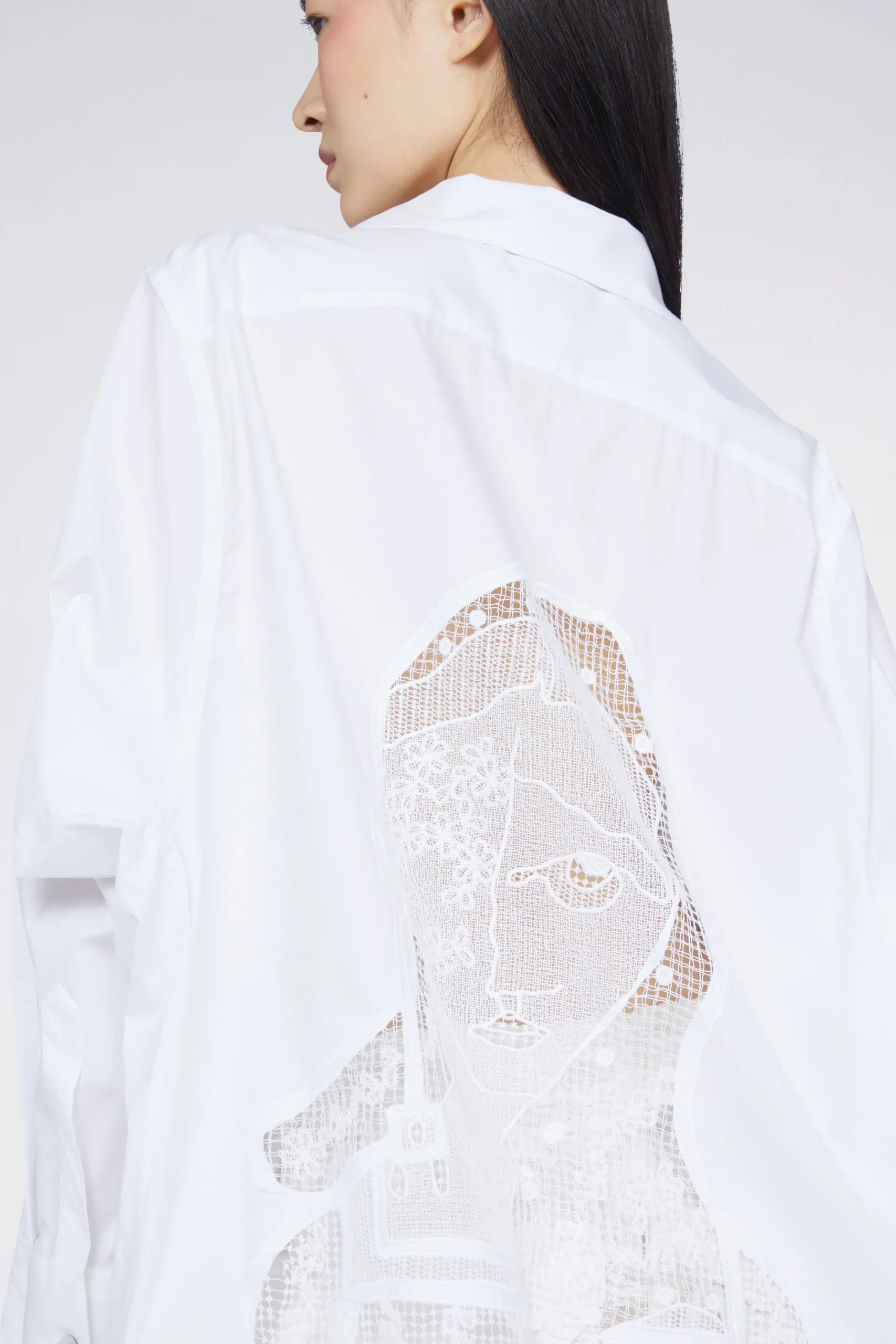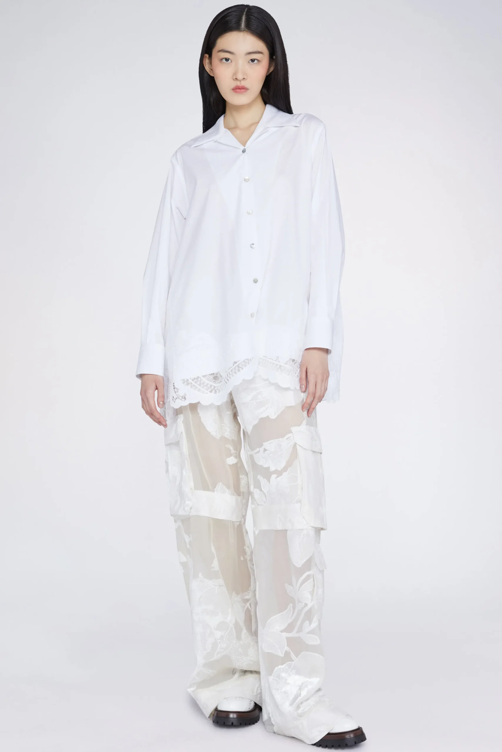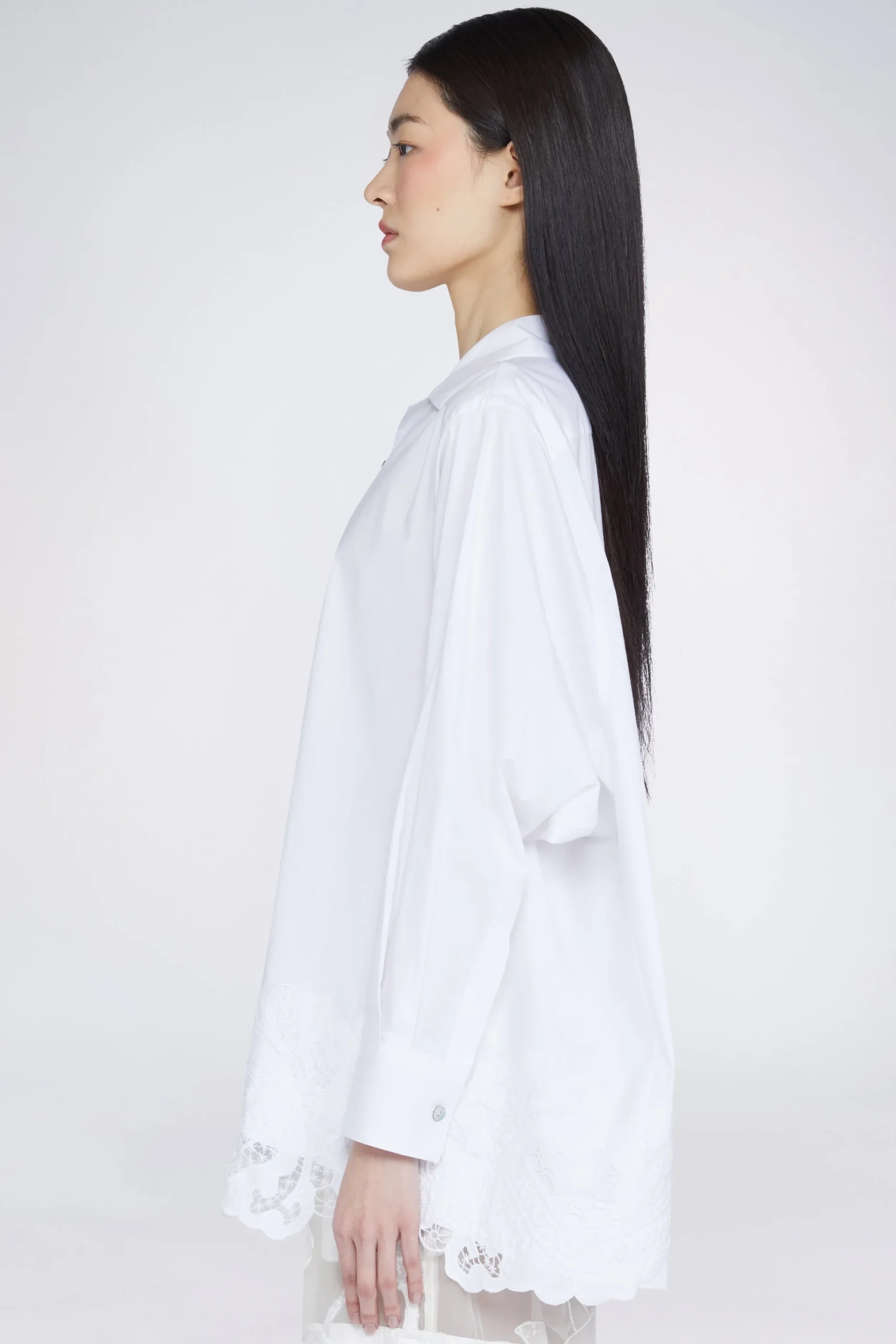 Camicia oversize in 100% cotone con dettagli macramè sull’orlo e sul retro.