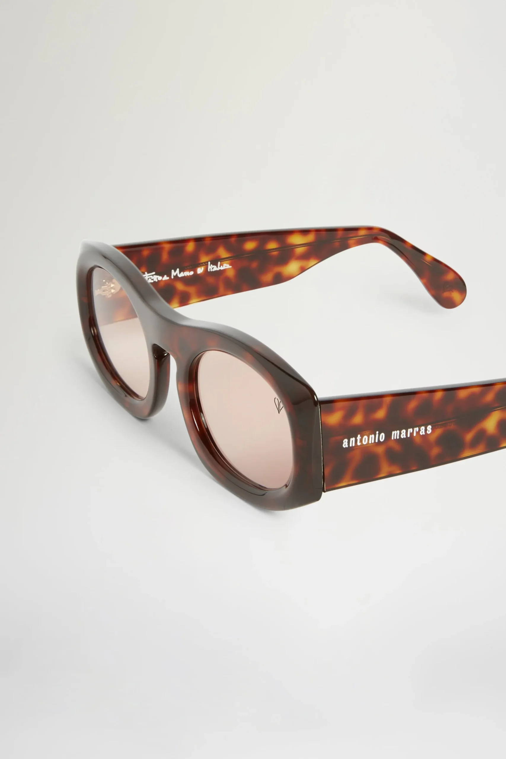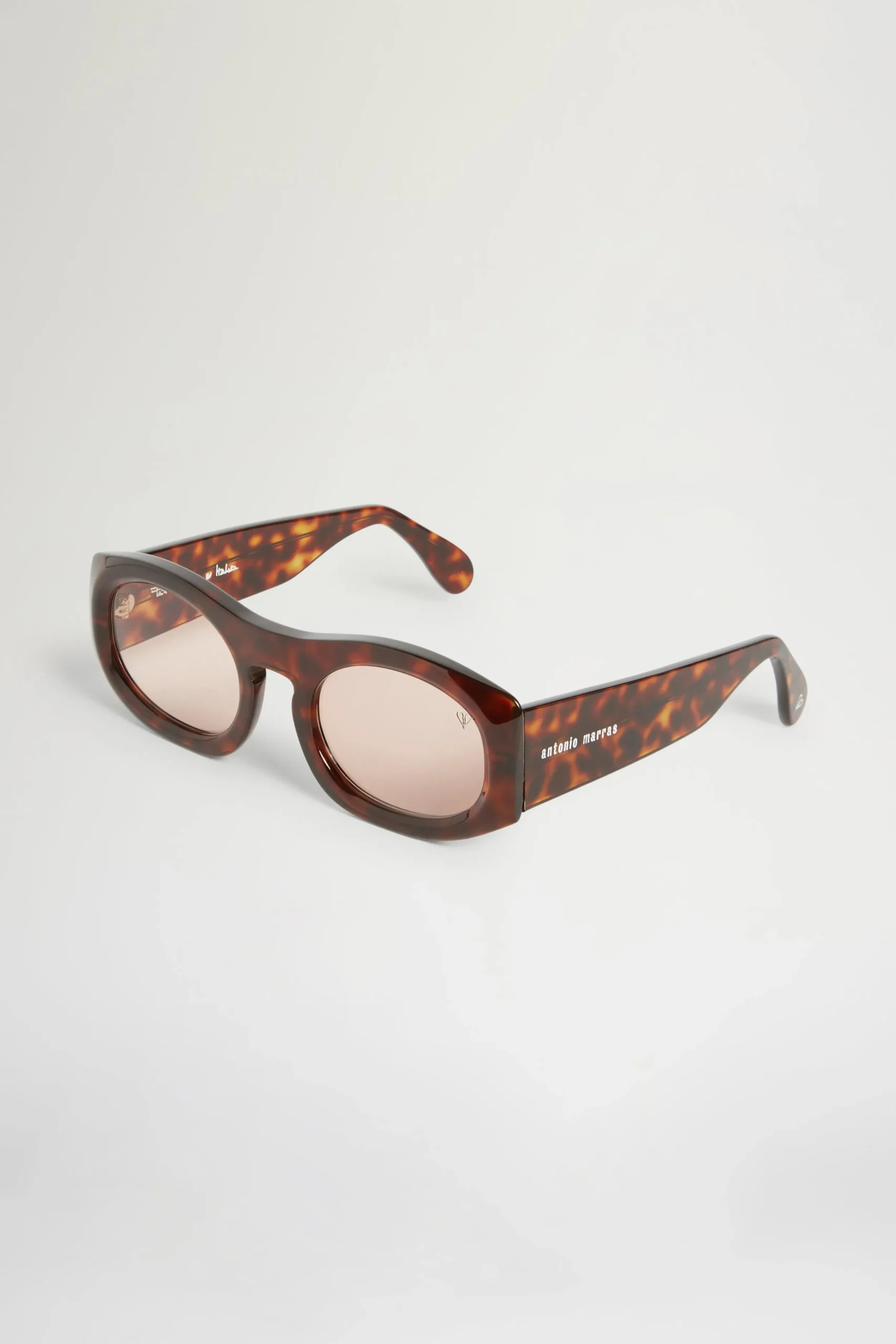 Occhiali a mascherina ovali in acetato marrone con logo inciso.