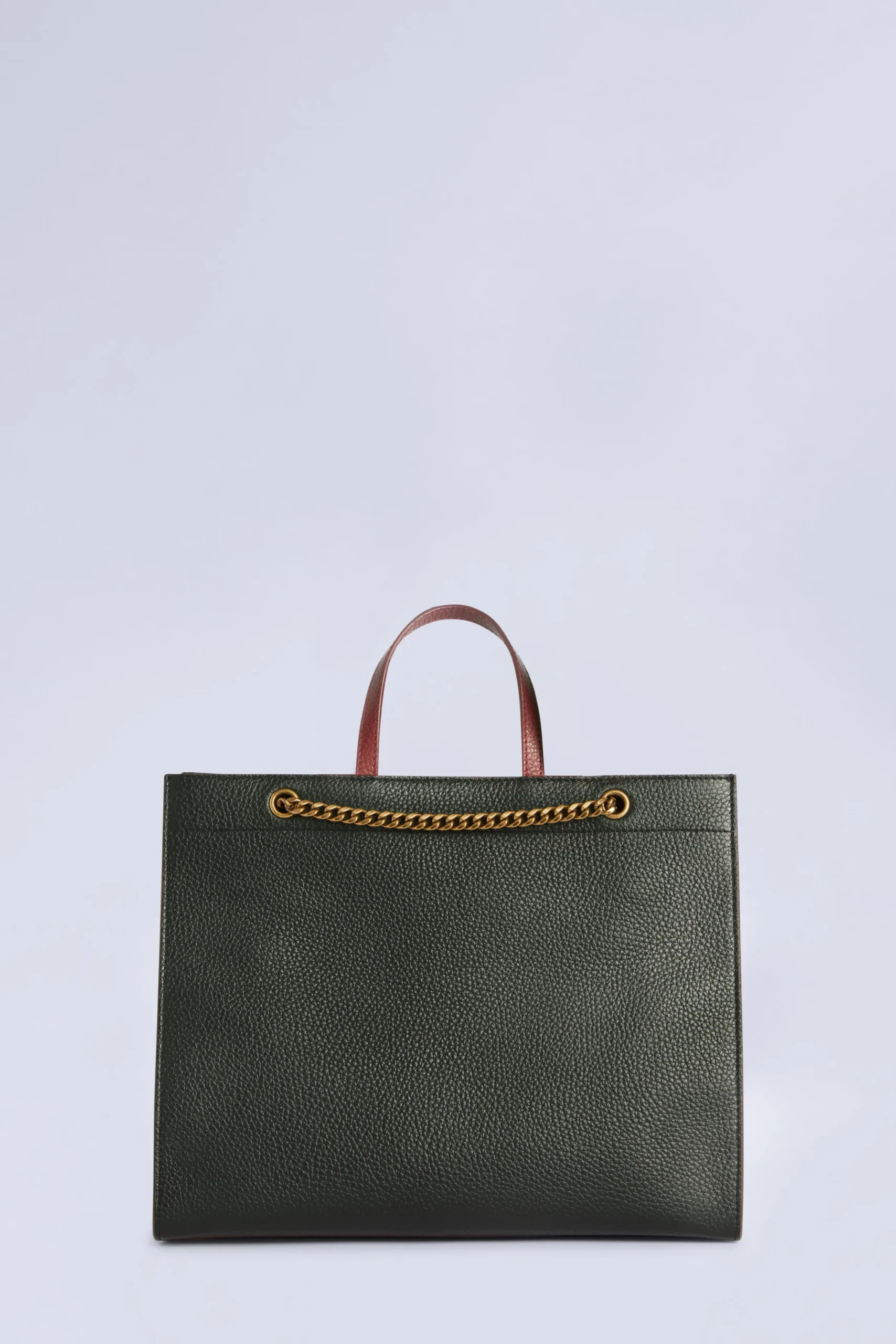Becca Medium è una borsa tote realizzata in pelle nera testurizzata e con impresso il logo della Maison. Presenta un manico più piccolo che lo rende più facile da portare a mano e una catena in ottone da portare sopra o a tracolla. L’interno è spazioso e foderato con un tessuto esclusivo, impermeabile e leggero.