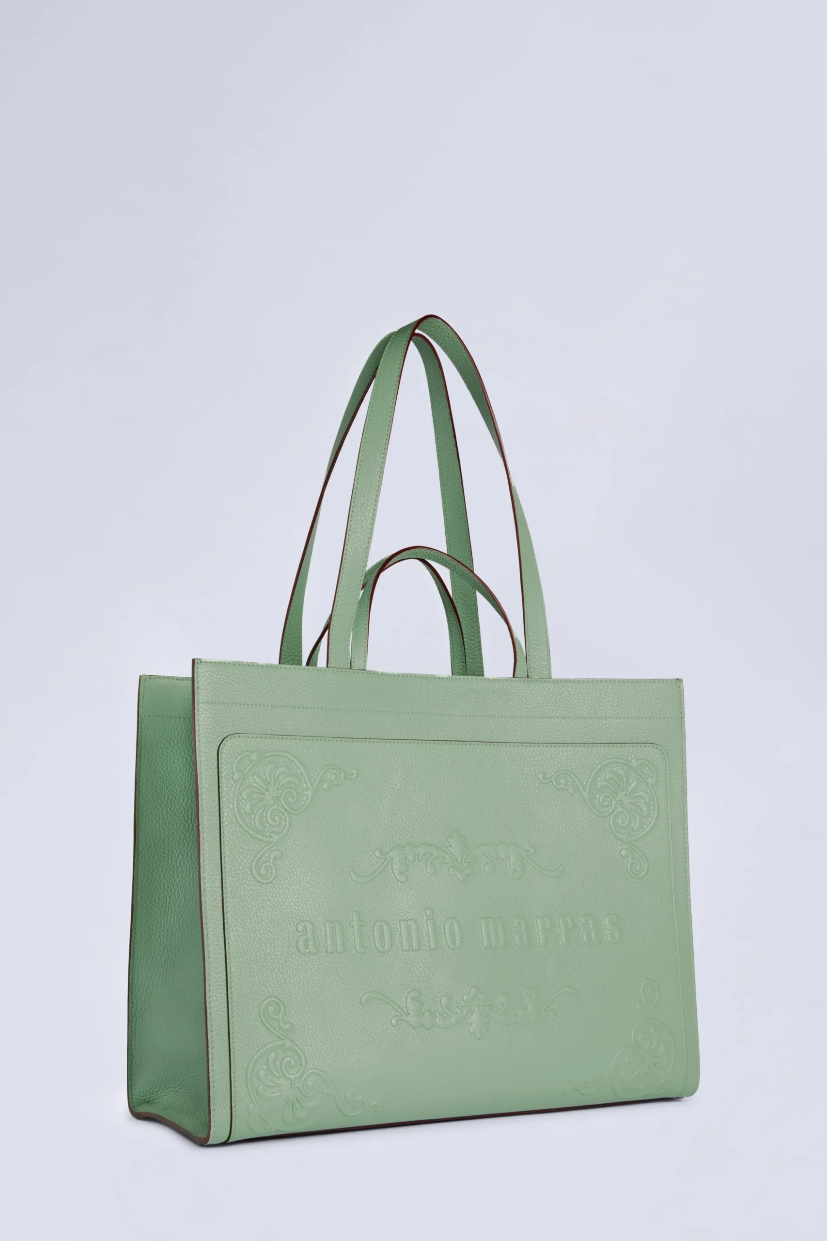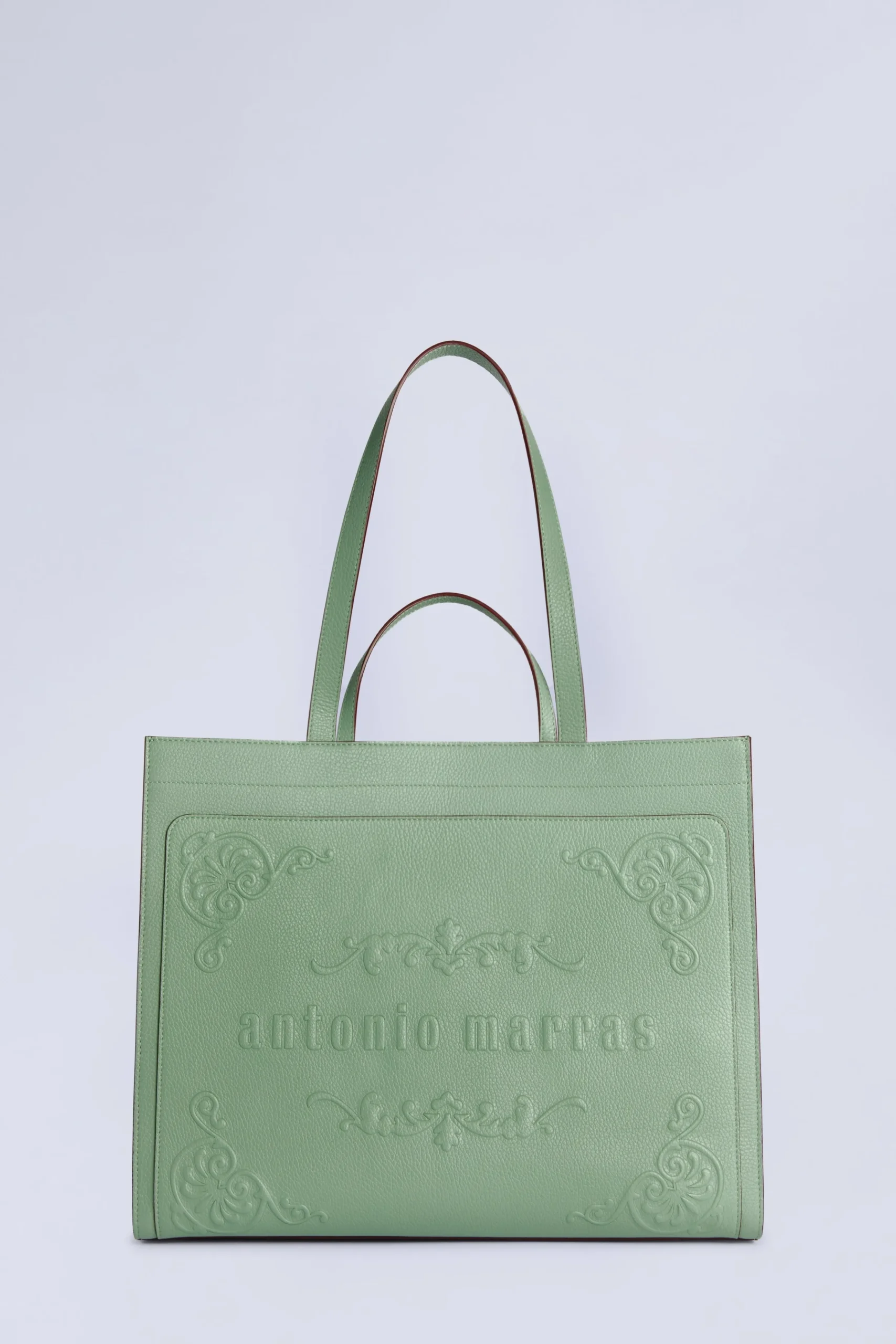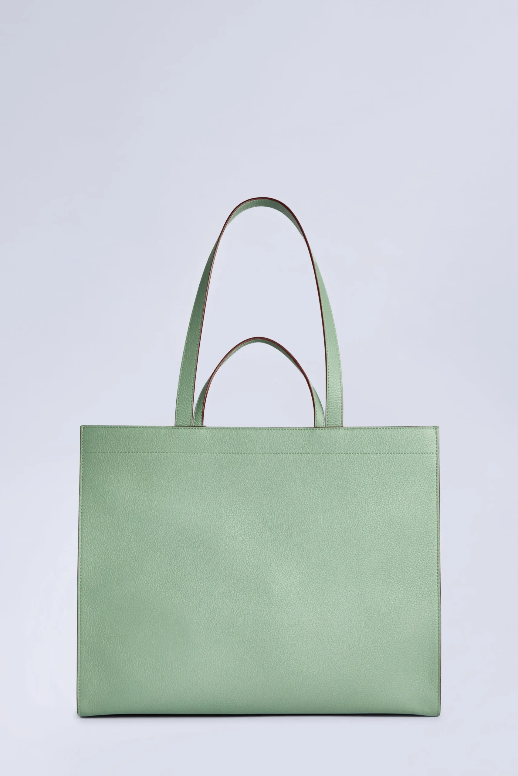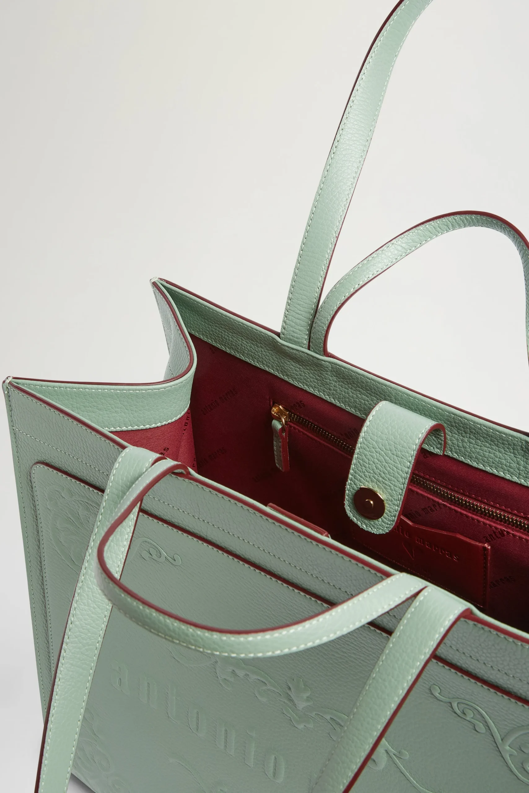 Becca è una grande borsa tote realizzata in pelle martellata verde salvia e con impresso il logo della Maison. È dotato di una maniglia più piccola che lo rende più facile da trasportare a mano. L’interno è spazioso e foderato con un tessuto esclusivo, impermeabile e leggero. Questa borsa è perfetta per organizzare e trasportare con facilità gli oggetti di tutti i giorni.