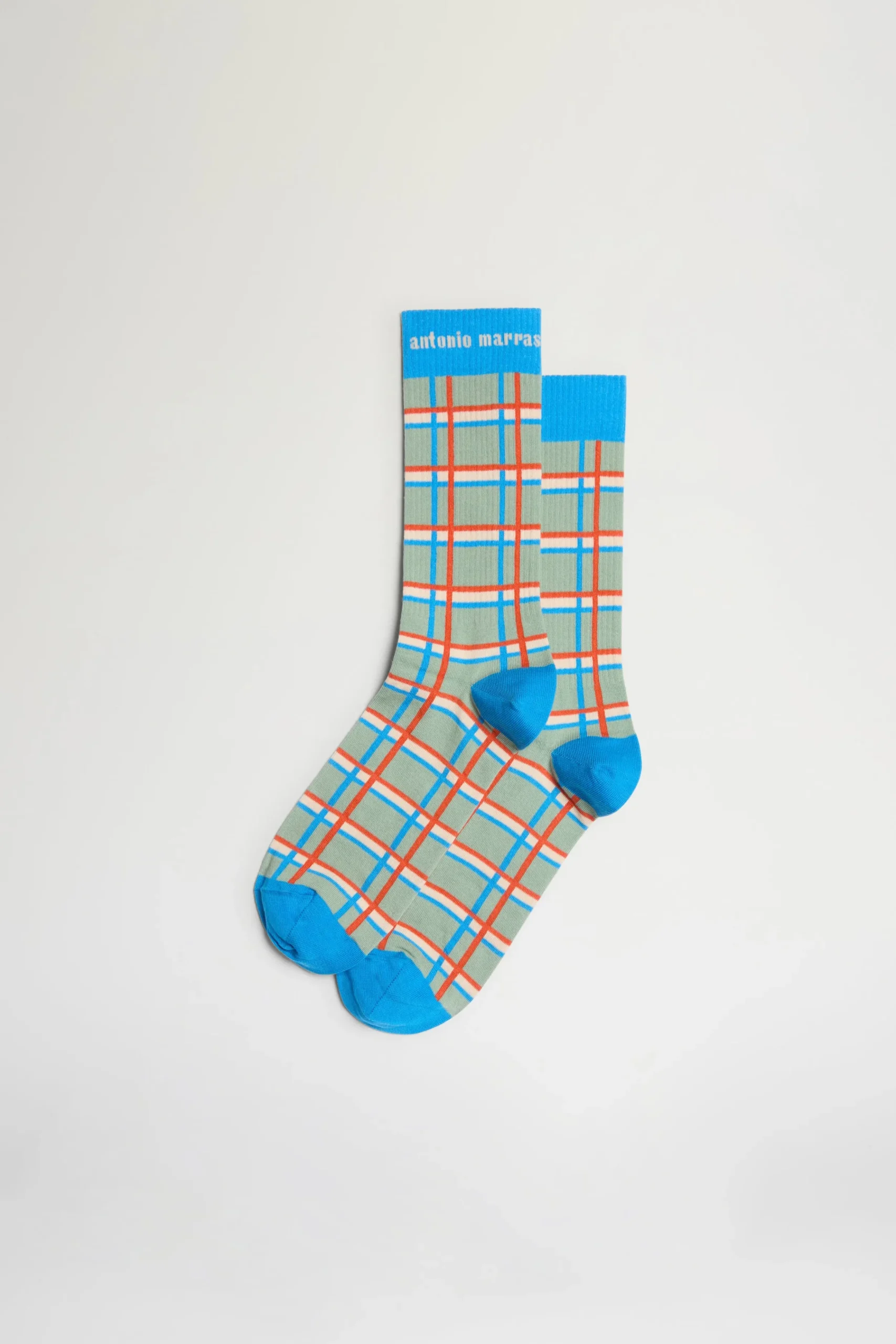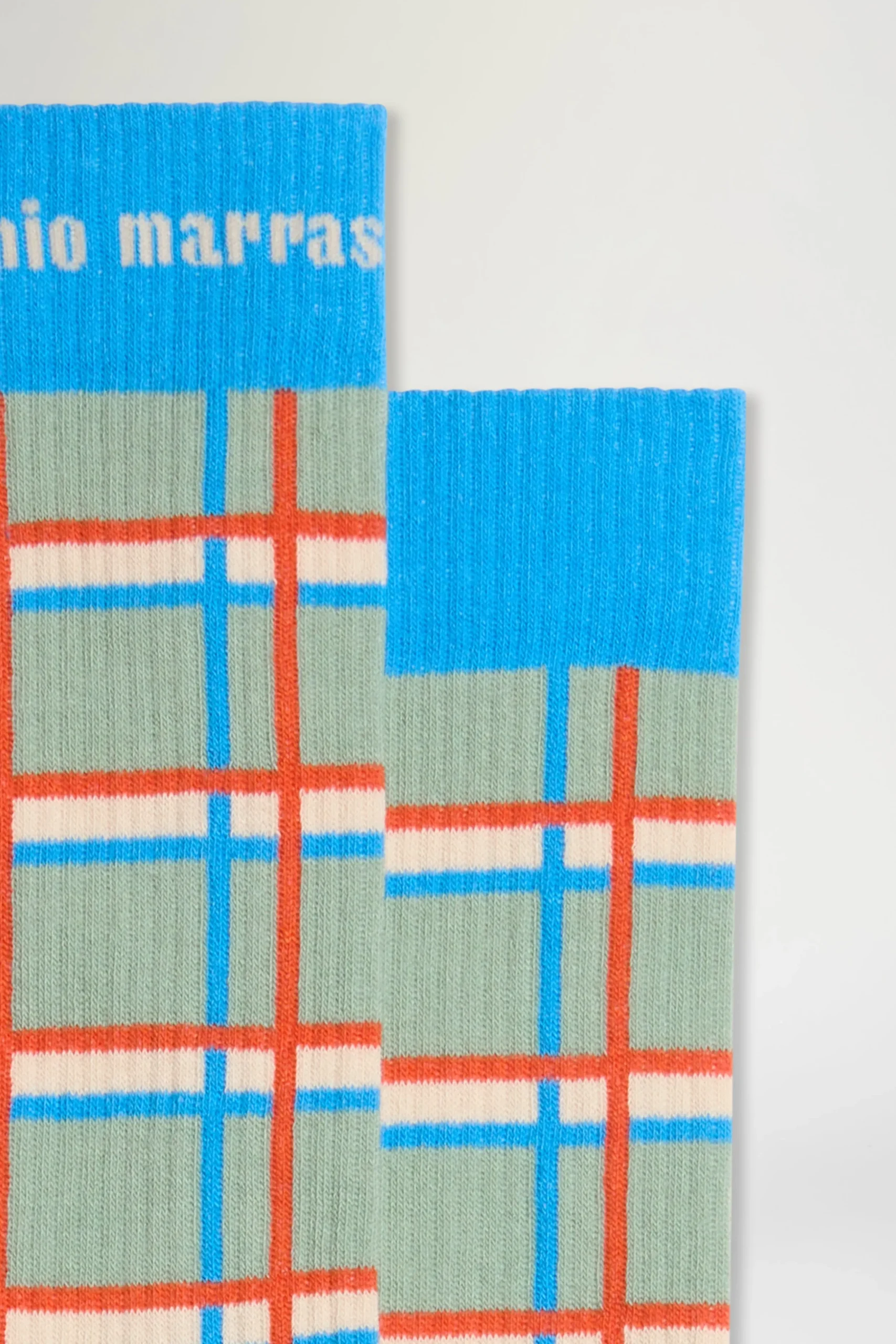 Calze in misto cotone a coste con un motivo a quadri in verde, arancione e blu, con logo ricamato Antonio Marras.