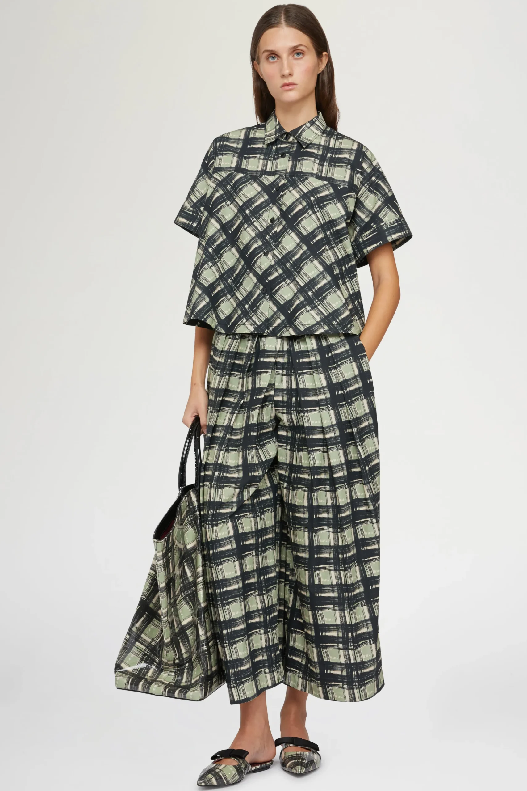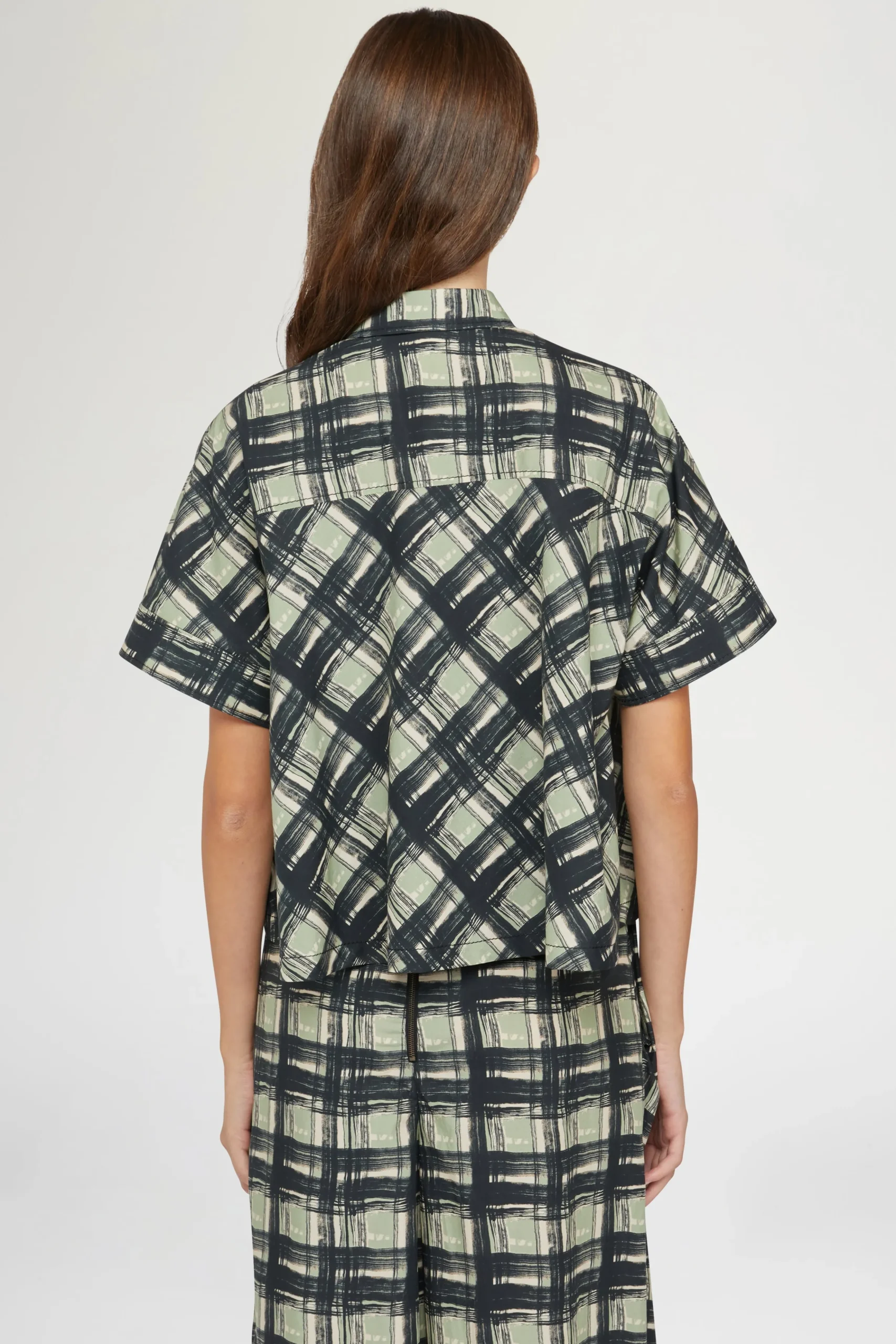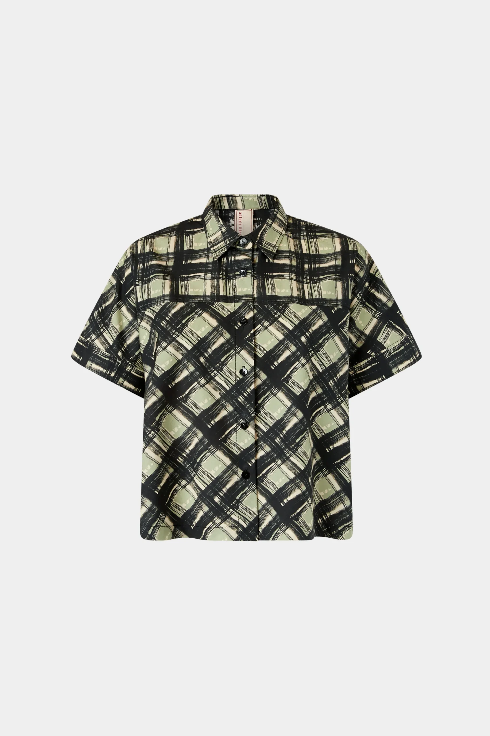 Camicia 100% cotone con silhouette oversize e vestibilità rilassata, maniche corte e colletto classico.