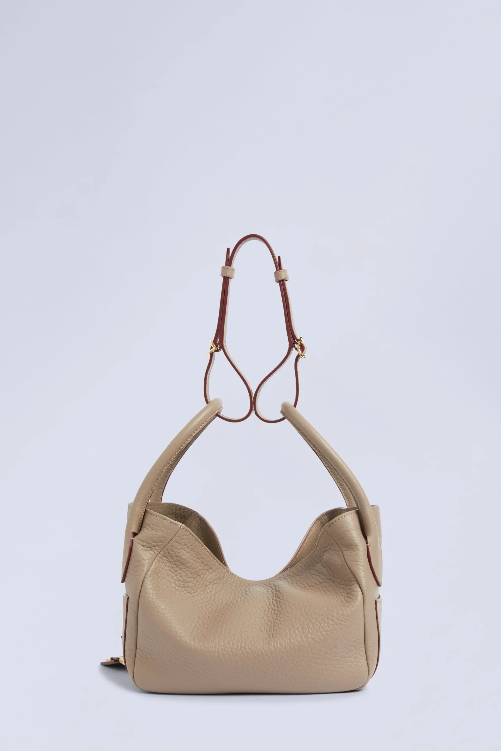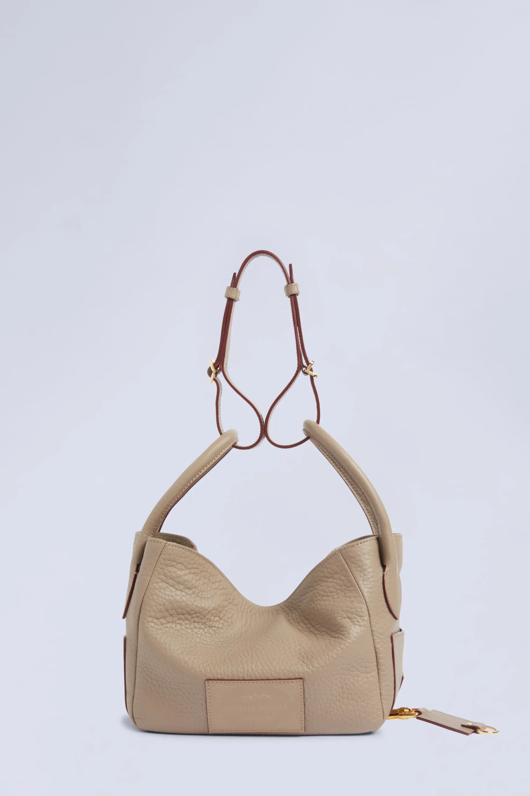 Borsa in 100% pelle bovina con tracolle regolabili e removibili. Può essere indossata a tracolla, a spalla o portata a mano.