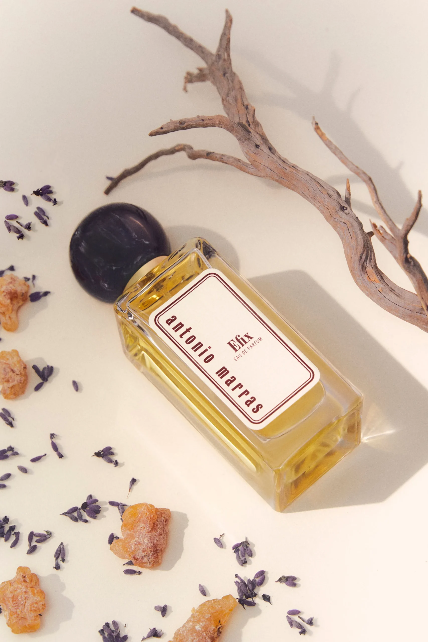 Efix, Patrono della Sardegna, nome simbolo della famiglia Marras. In Efix vibra la saggezza di un mondo ancestrale tra il biblico e l’omerico. L’essenza della nobiltà d’animo e dell’ardore. Un profumo dal colore neutro, rassicurante, che riflette raffinatezza e purezza. Un fouger originale, dalla struttura inedita. Le foglie di salvia unite a l’incenso rinfrescati dalla lavanda e dal muschio bianco.
