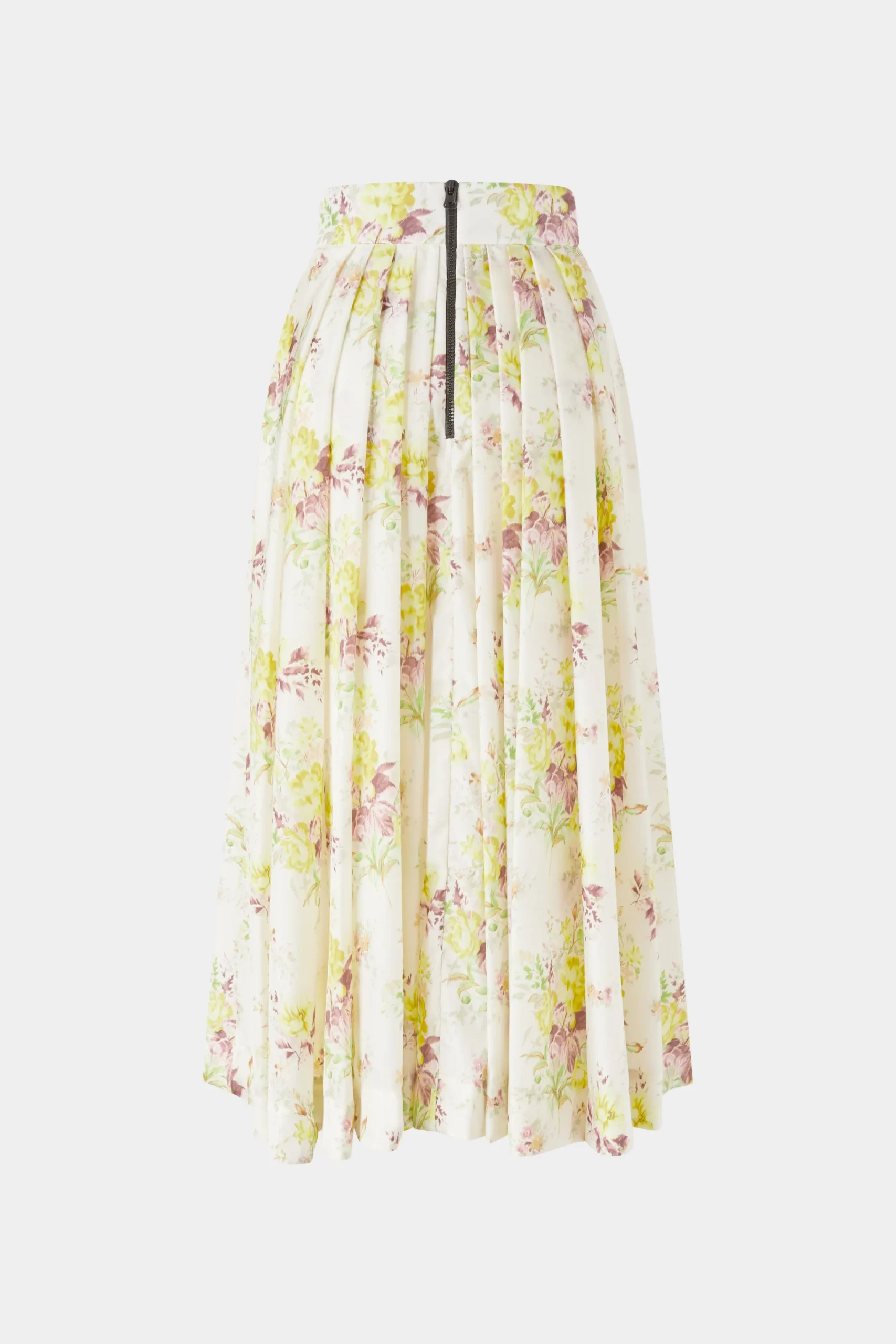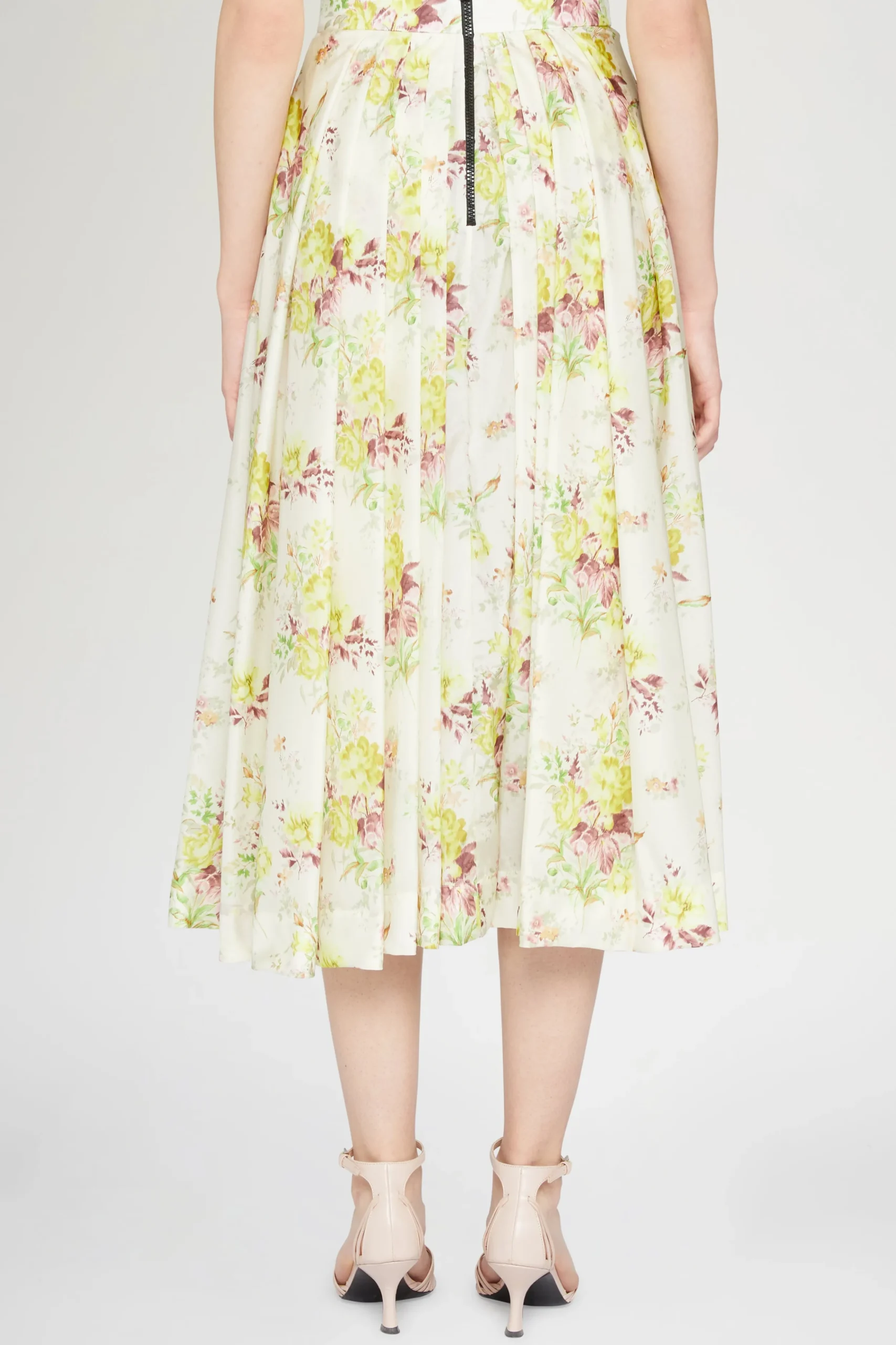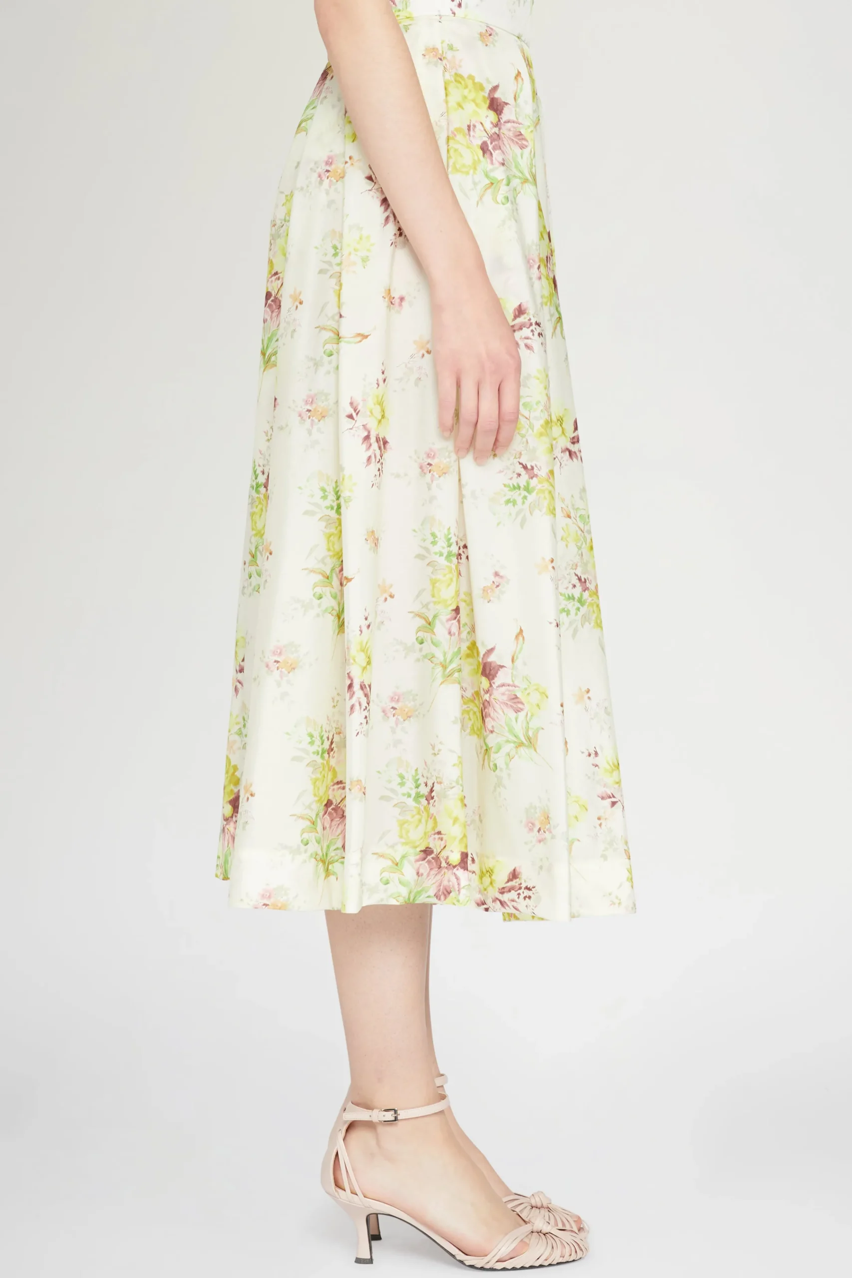 Gonna in cotone midi con pieghe e chiusura con zip sul retro, adornata con una delicata stampa floreale.