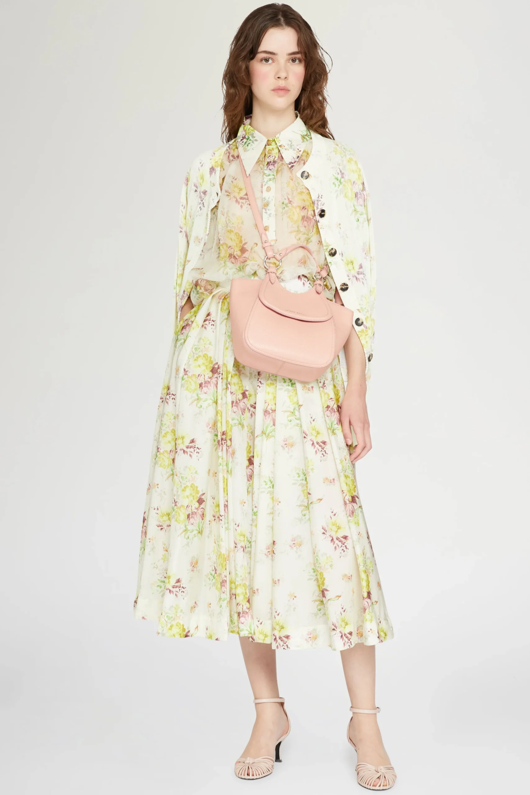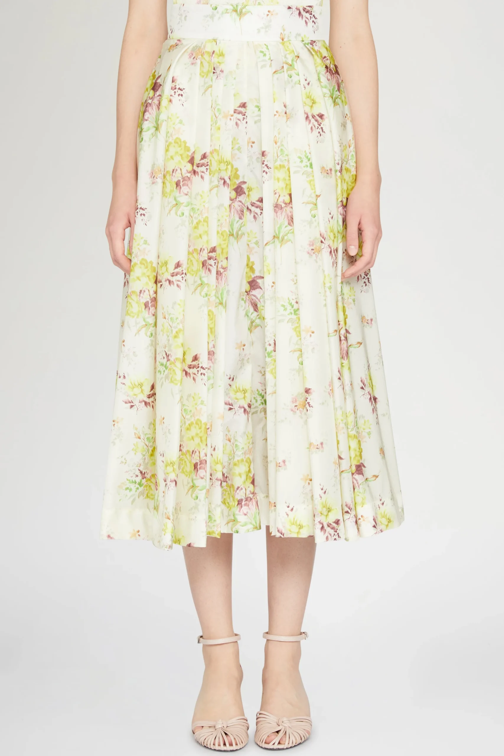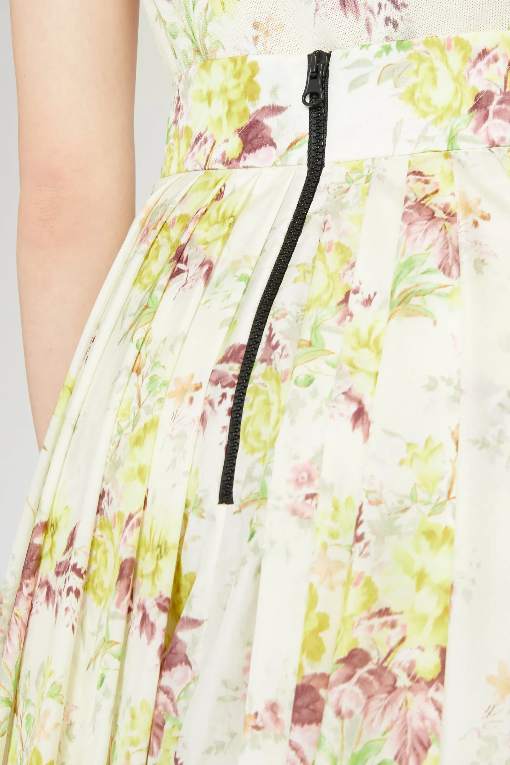 Gonna in cotone midi con pieghe e chiusura con zip sul retro, adornata con una delicata stampa floreale.