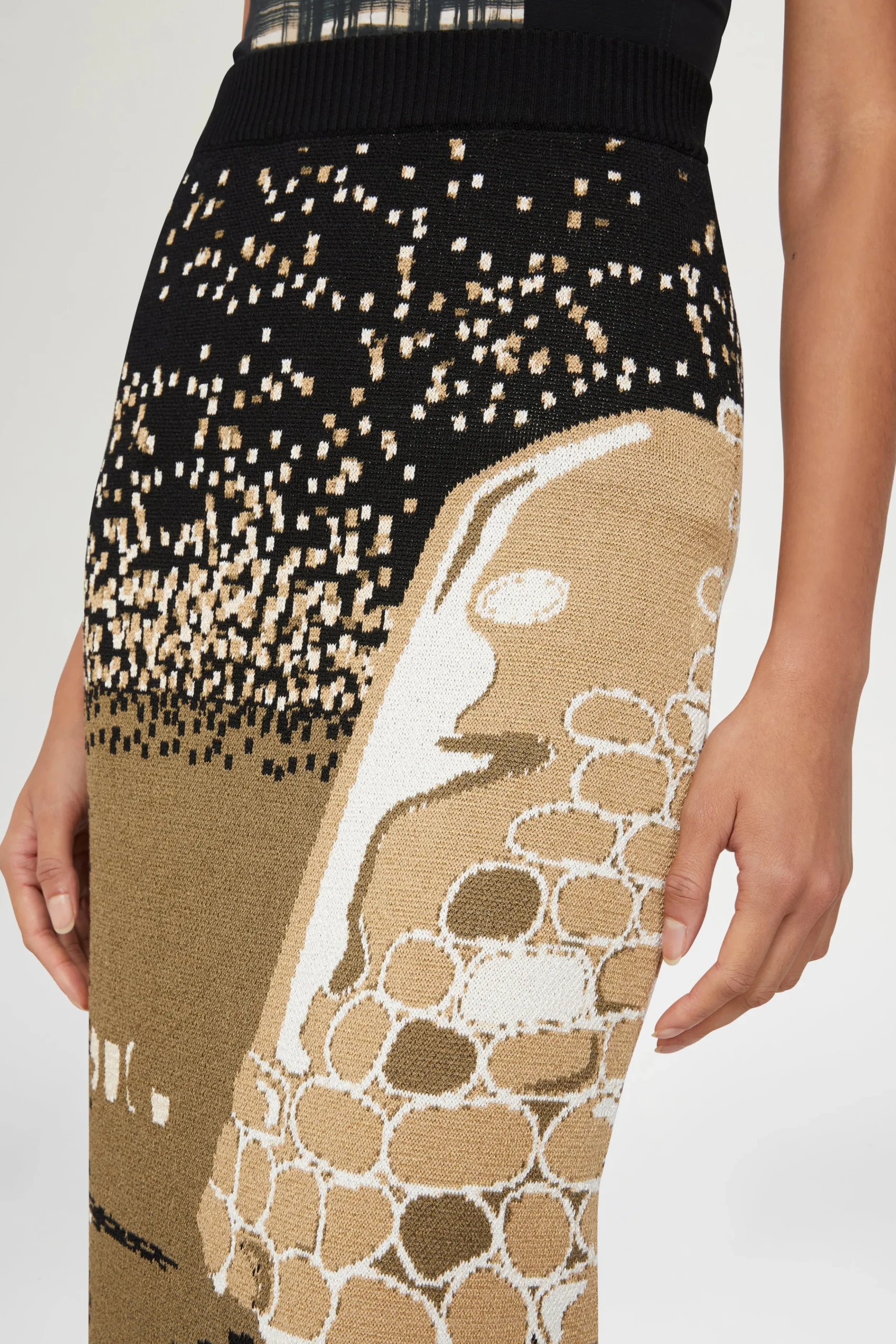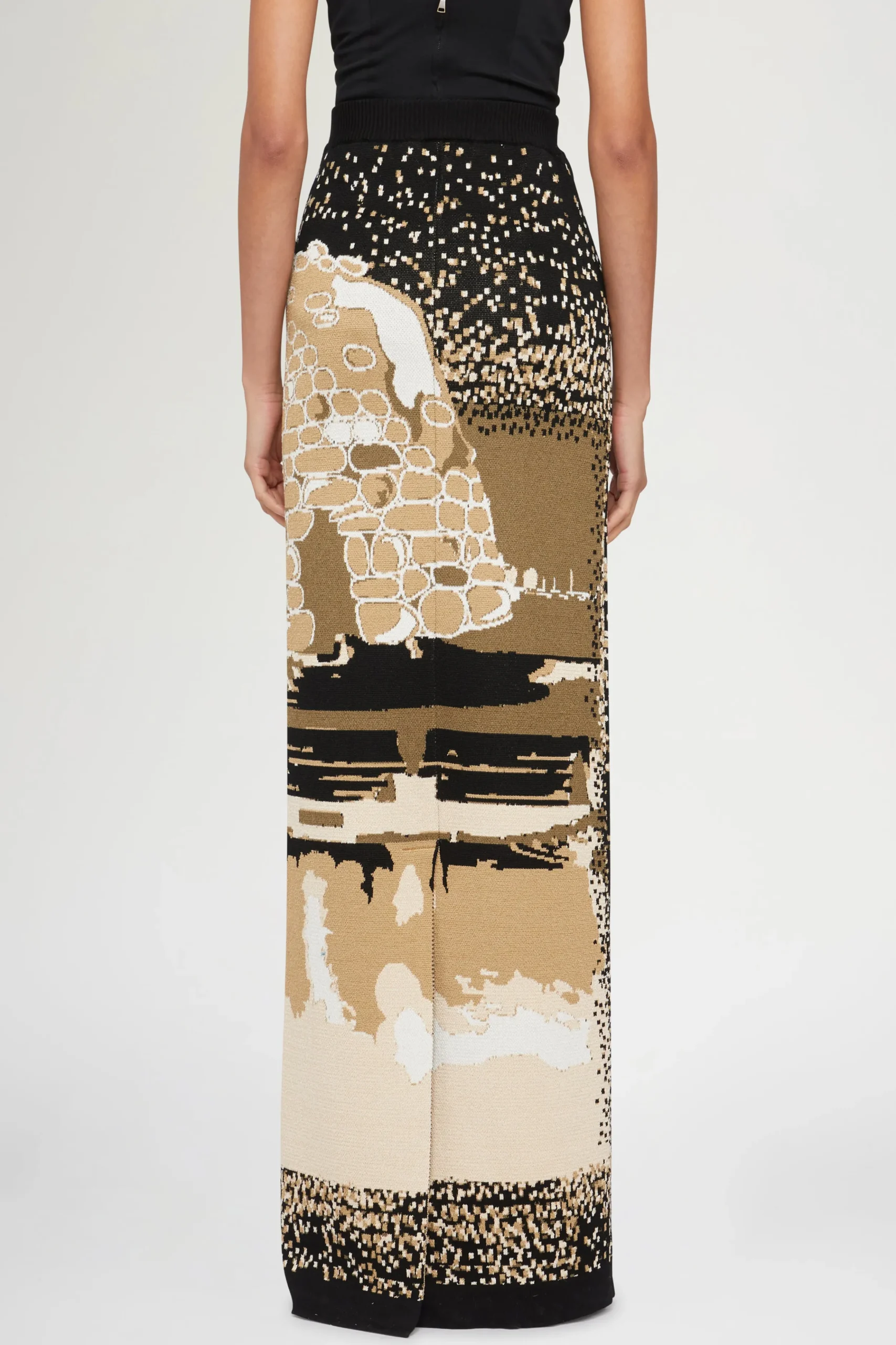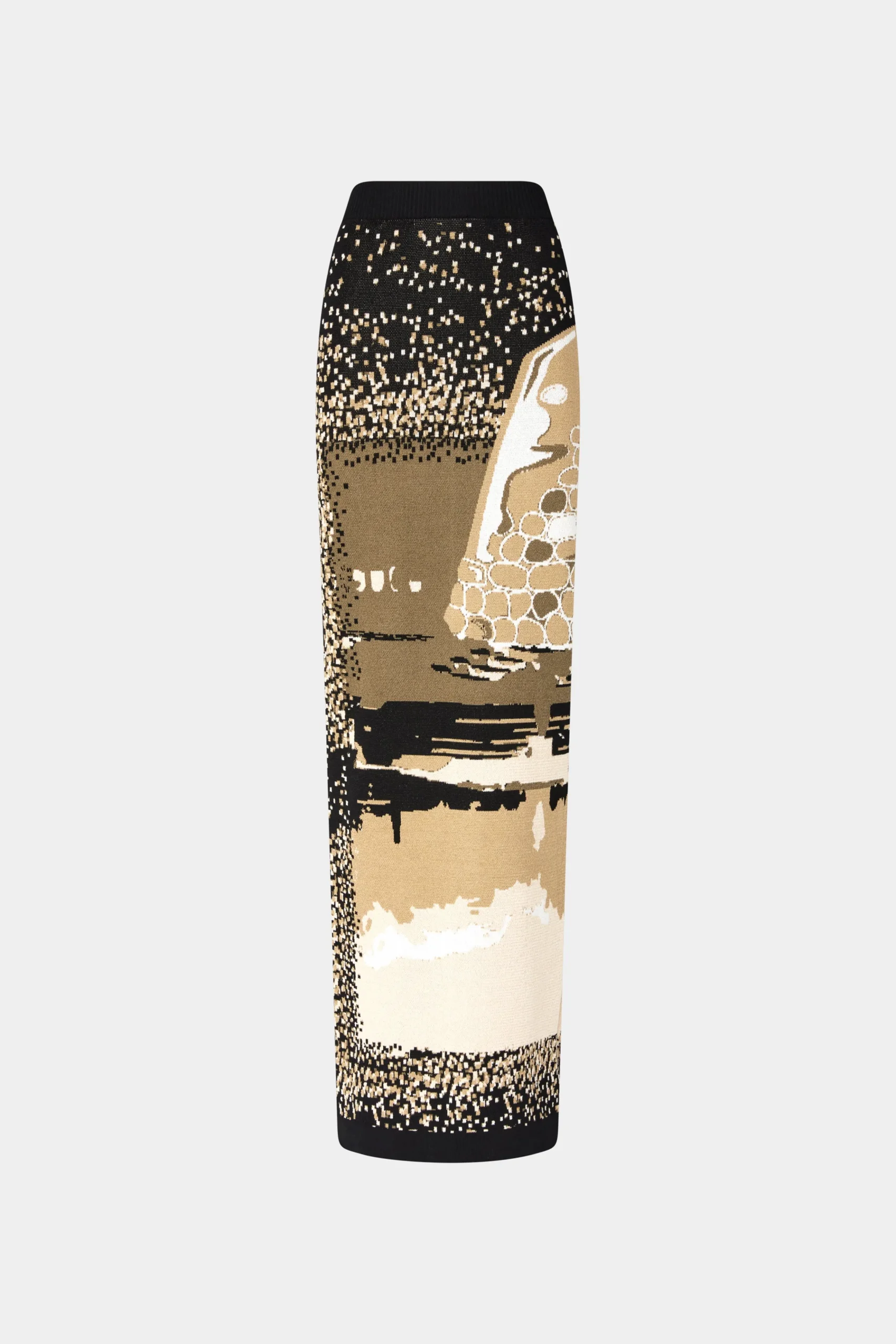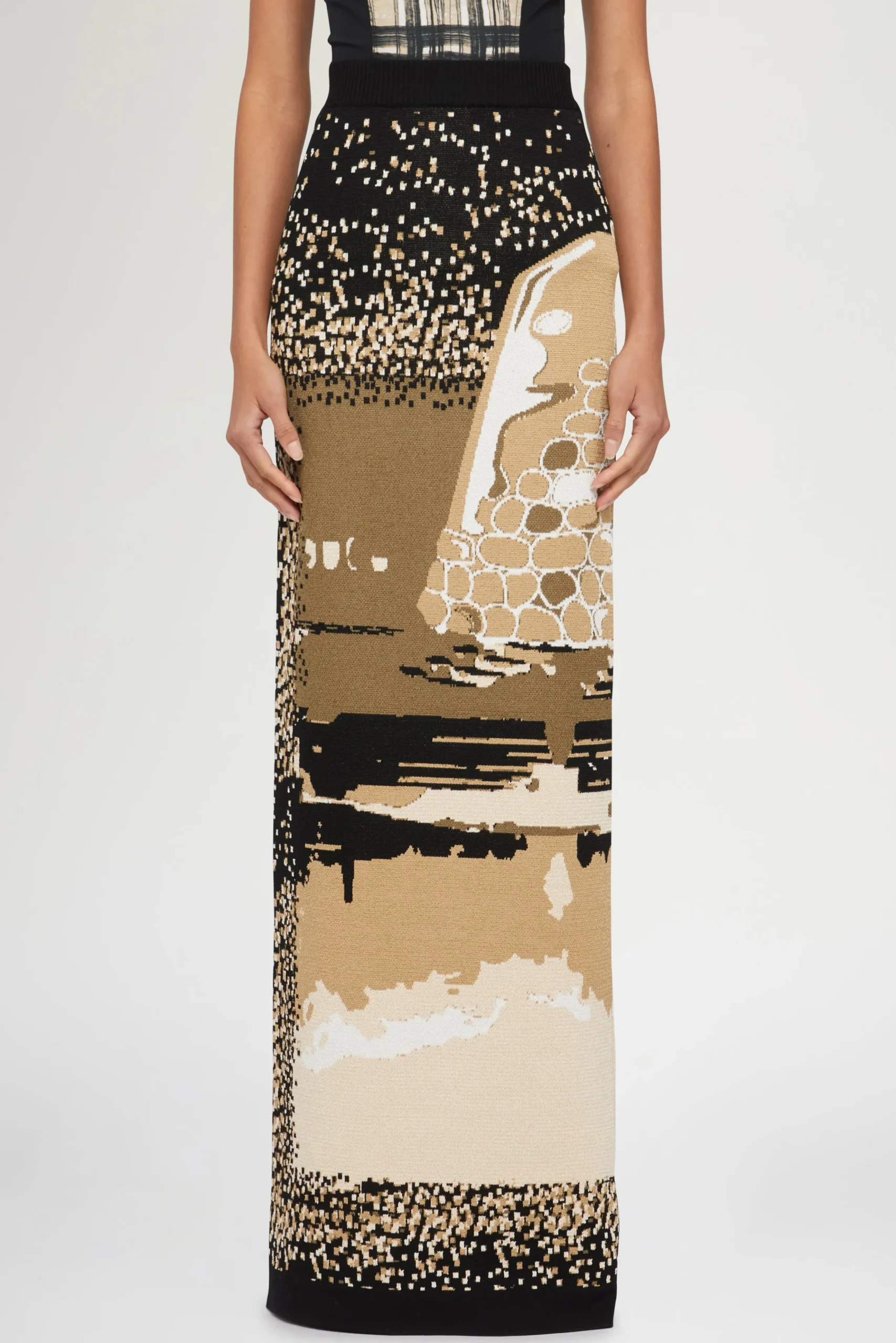 Gonna lunga in maglia con silhouette aderente a vita alta in tessuto misto cotone.