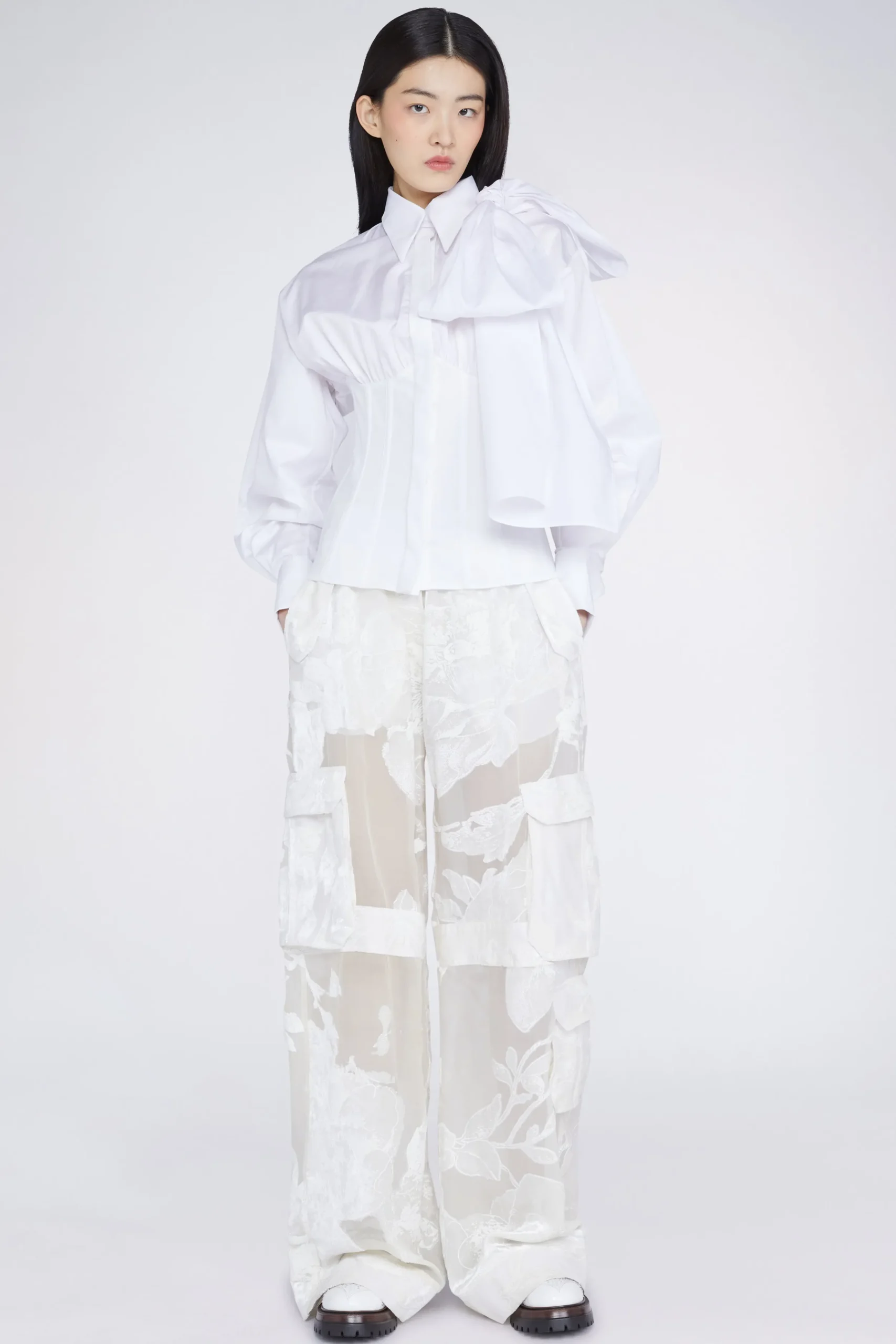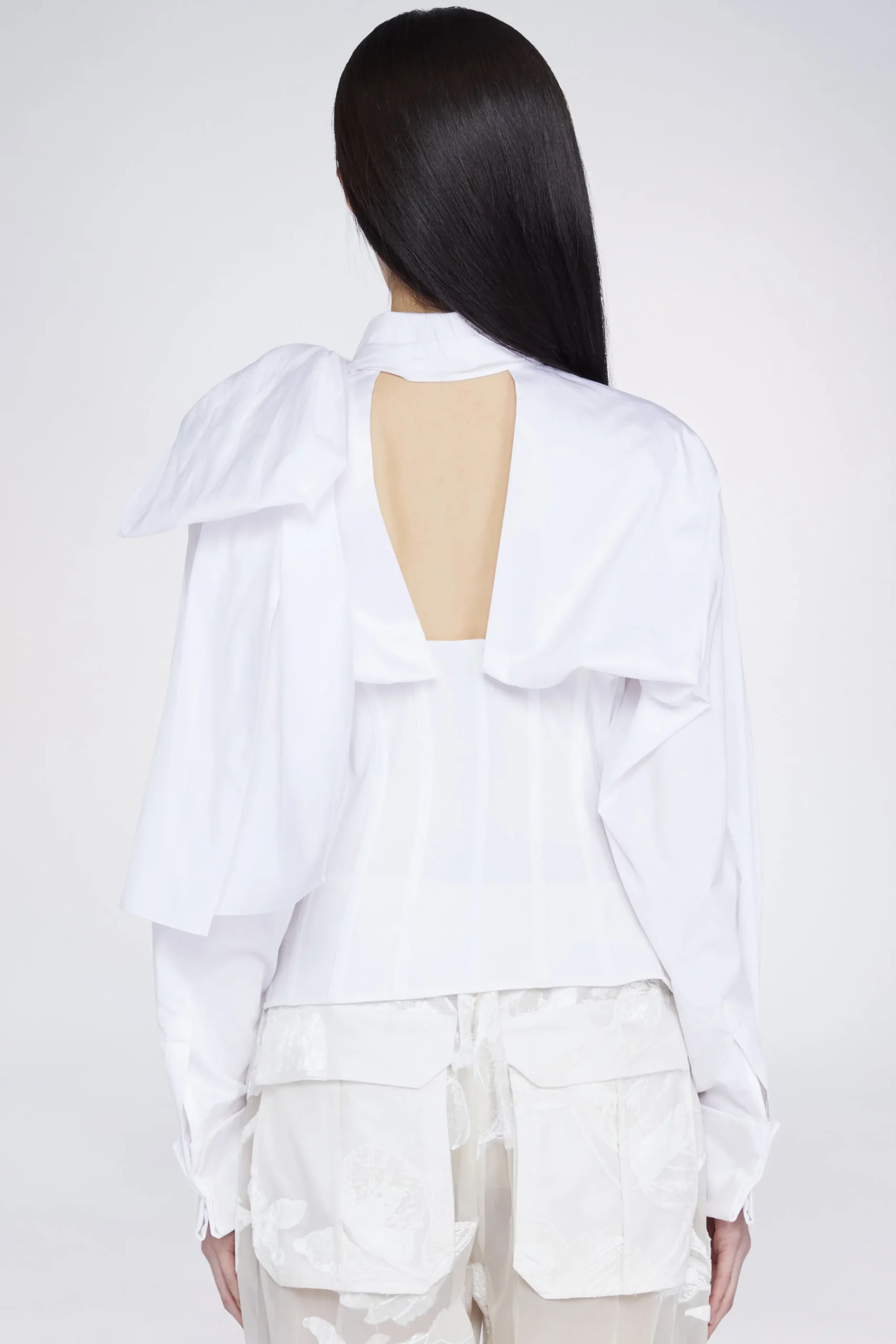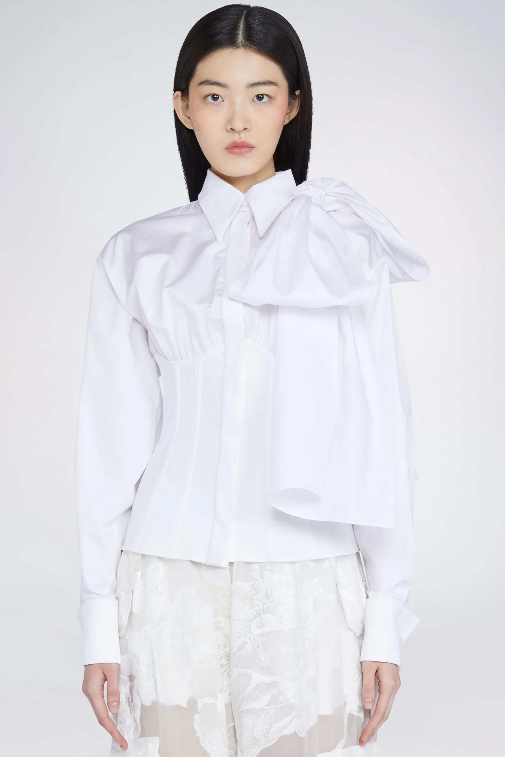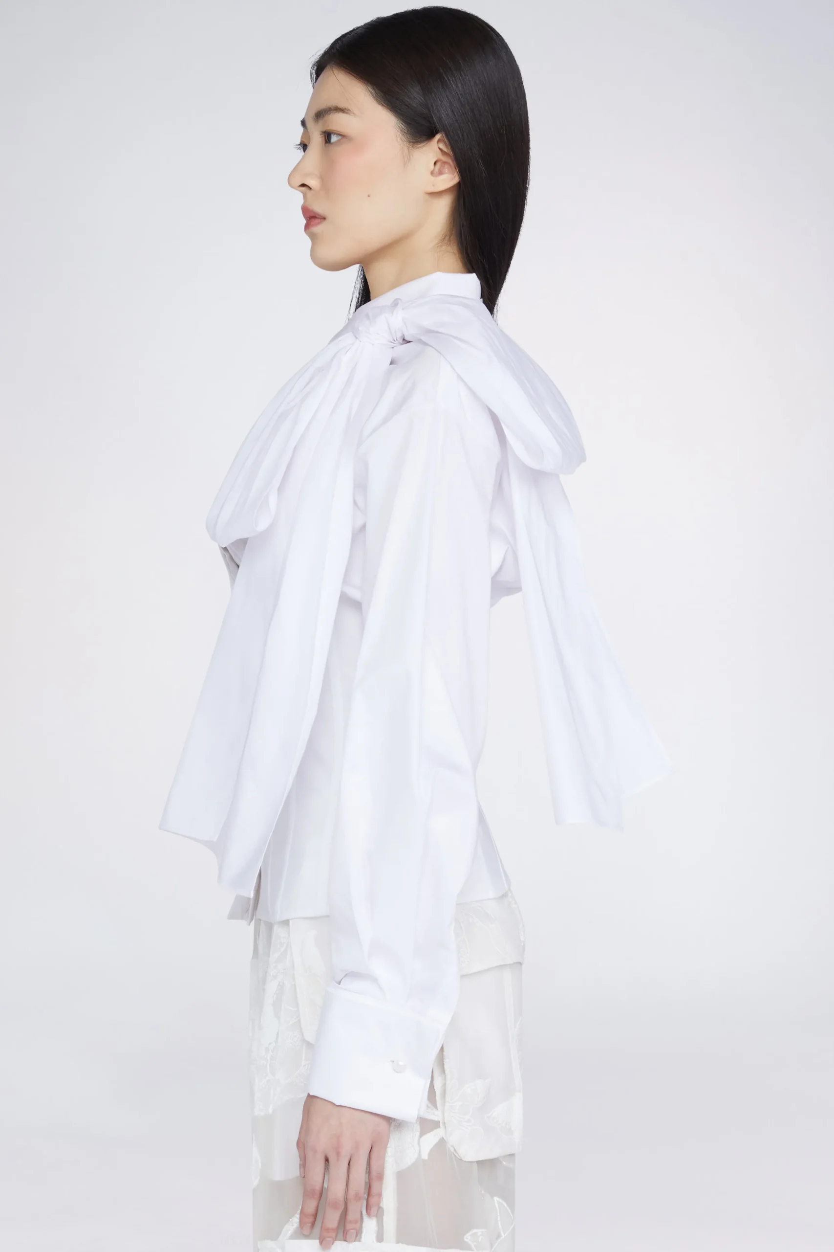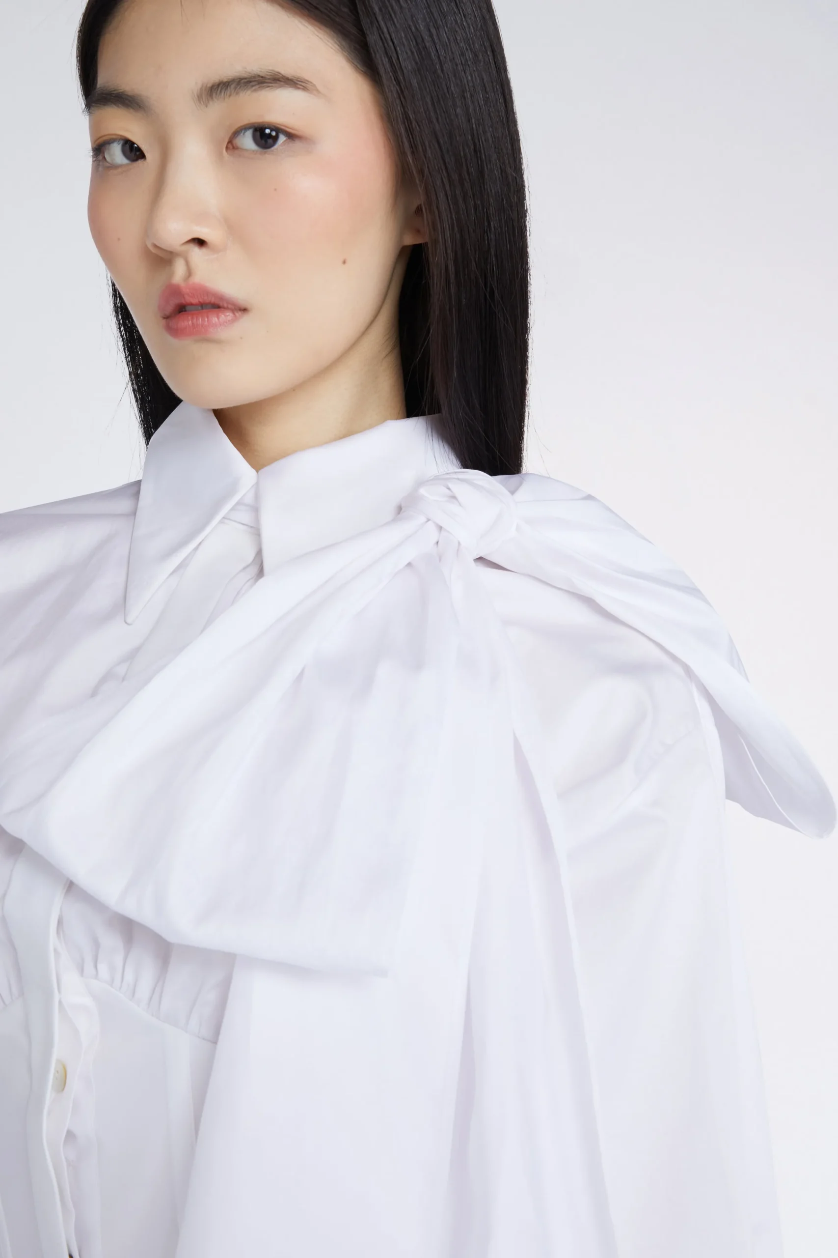 Camicia bianca realizzata in cotone 100% con fiocco sul collo.