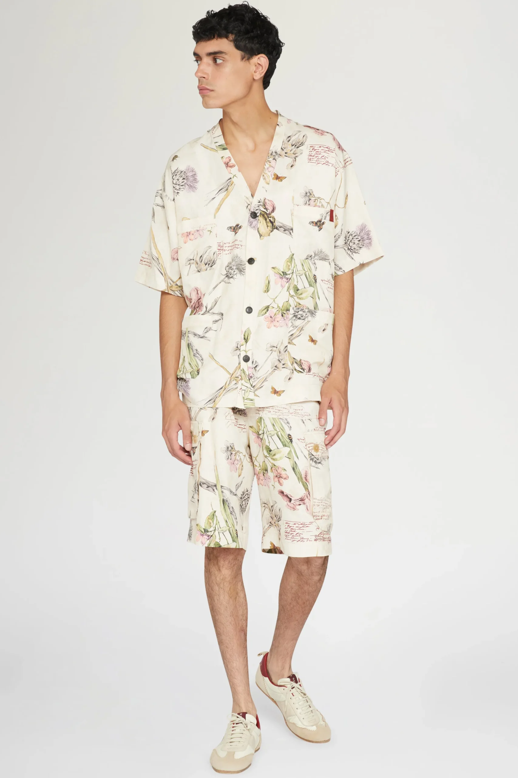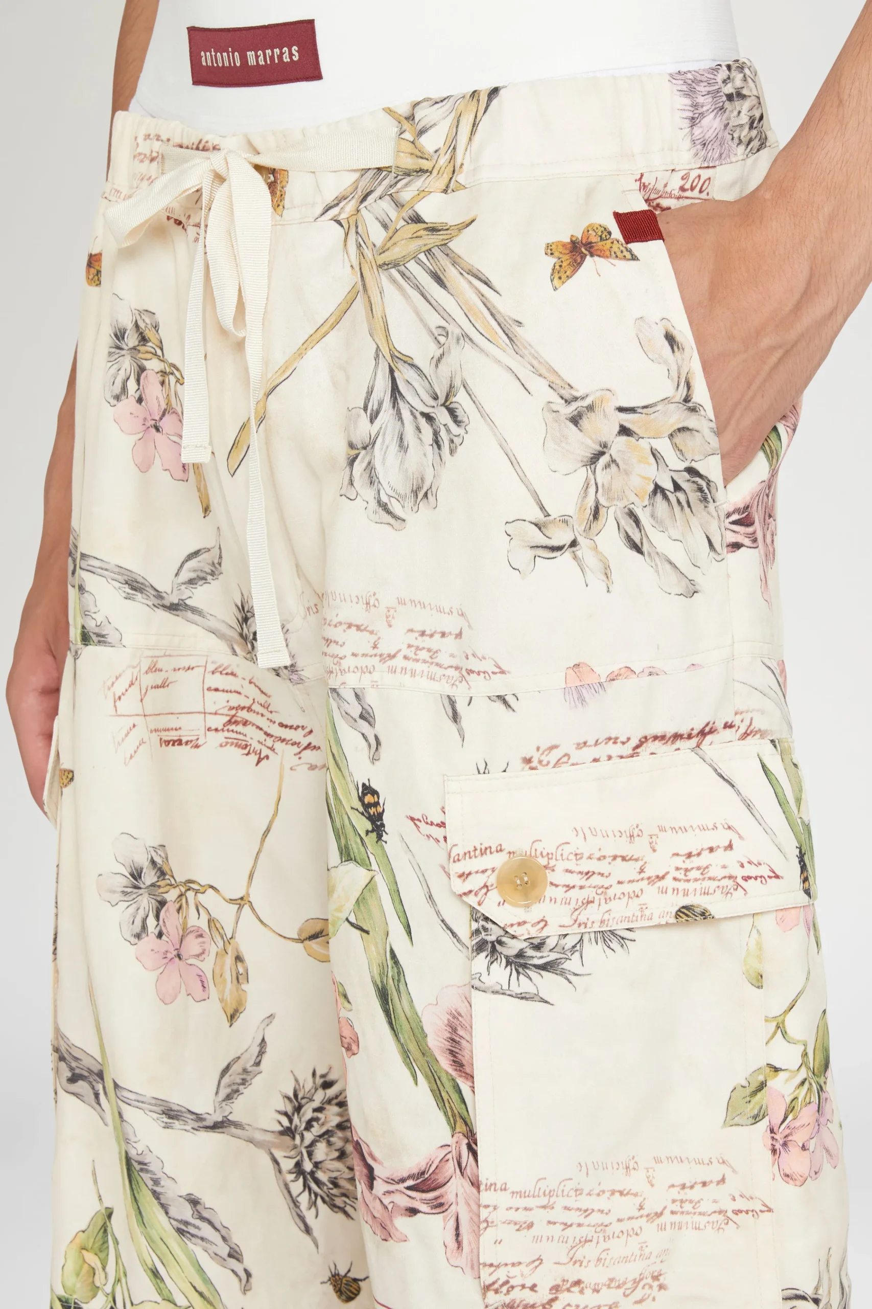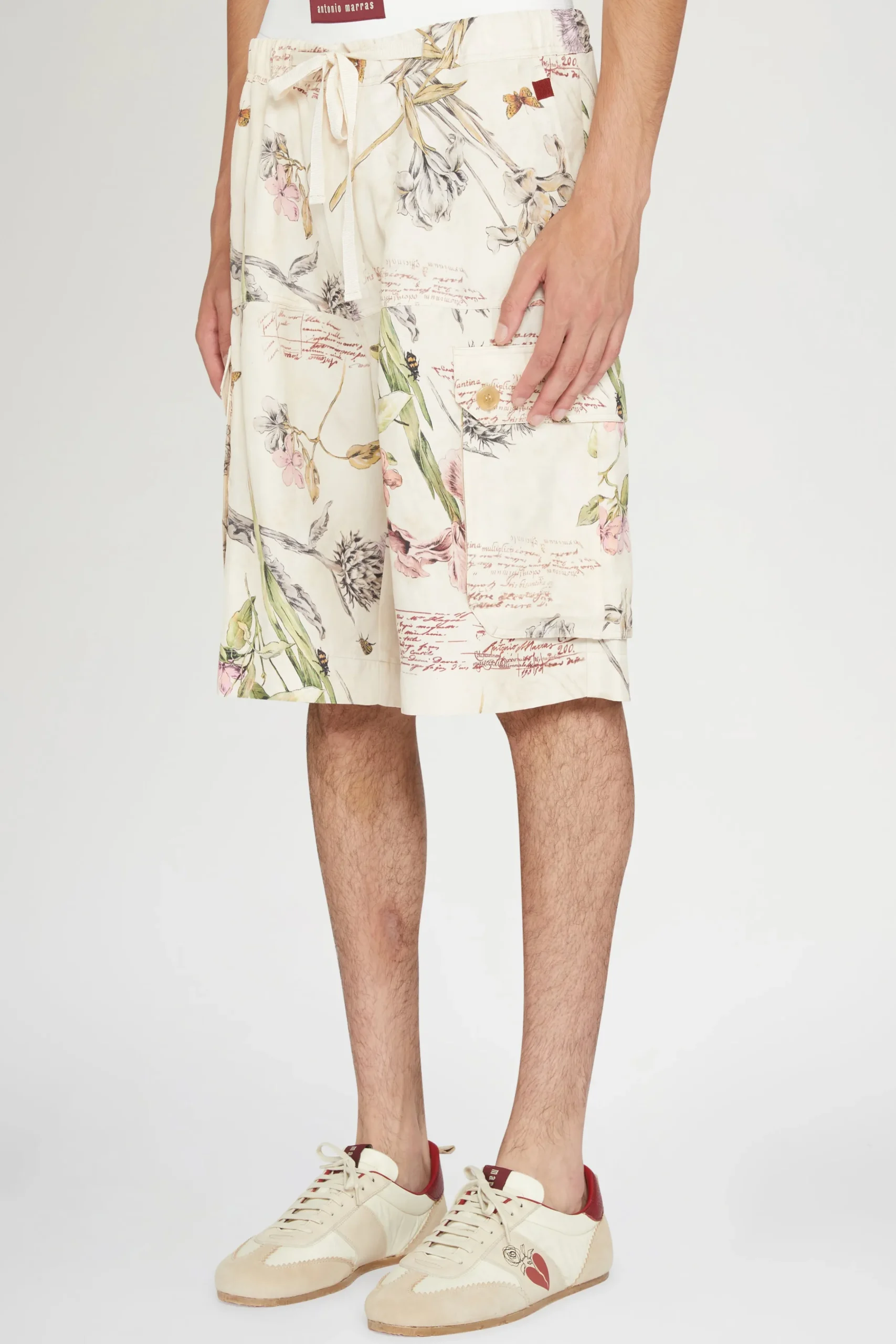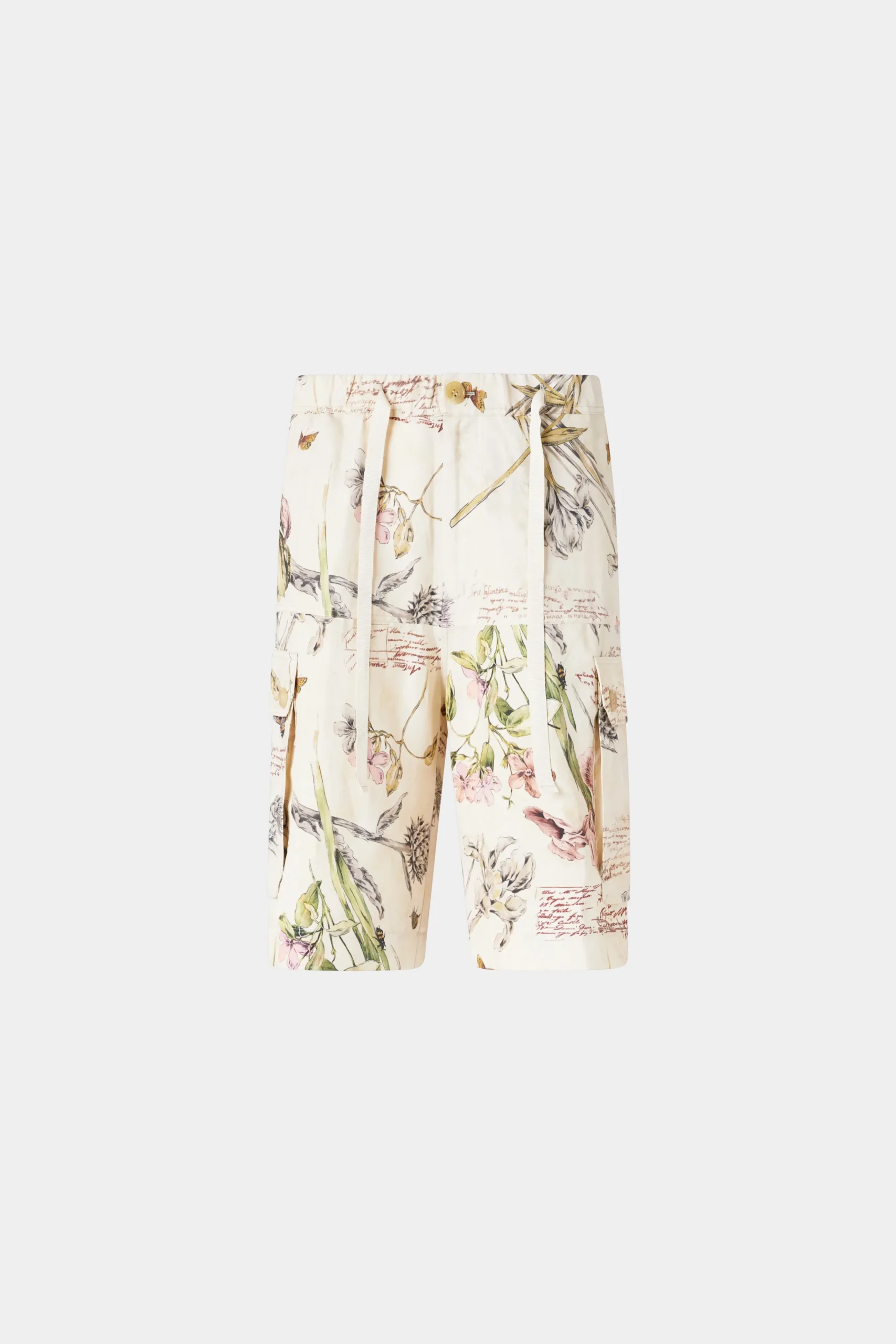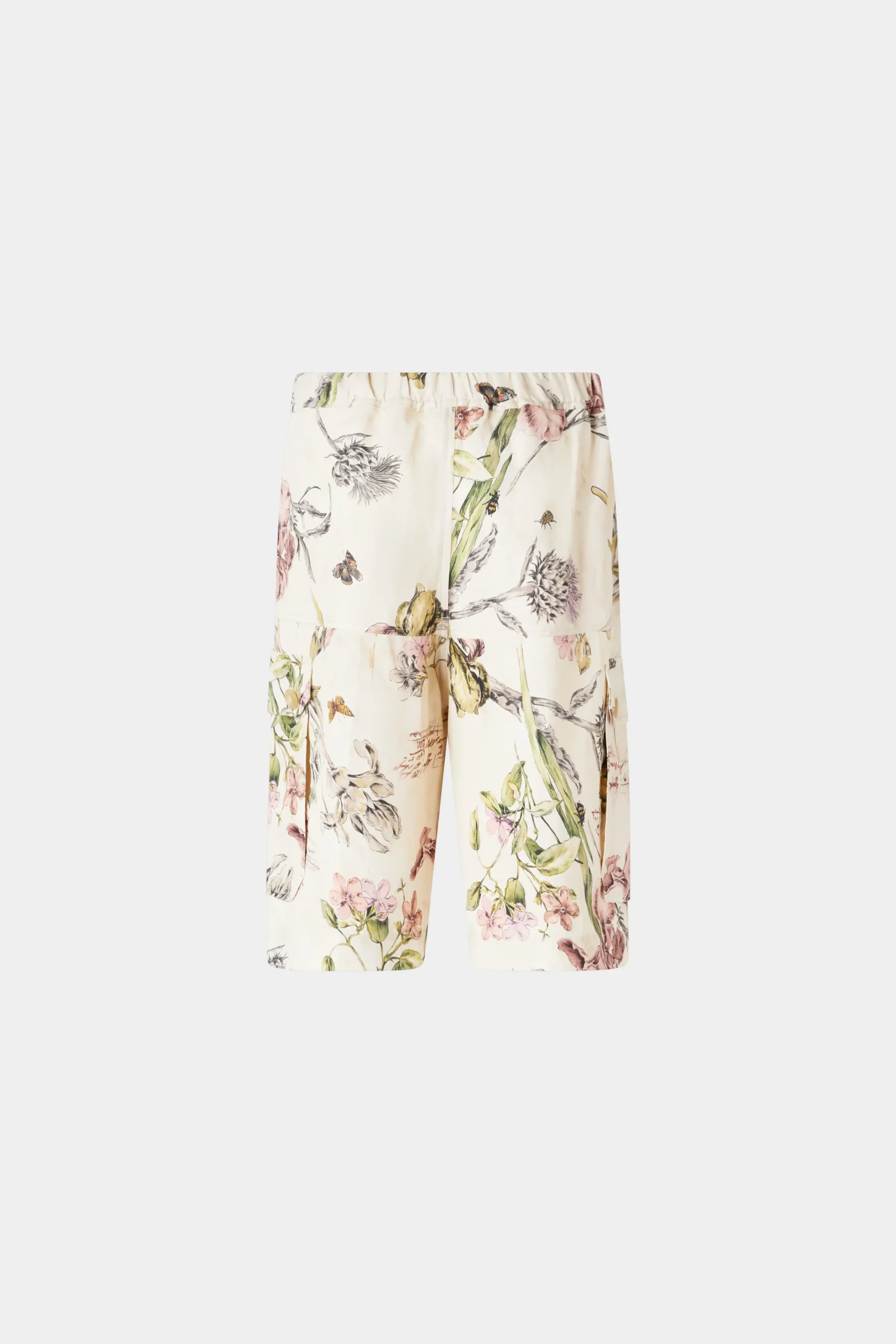 Pantaloni corti con vita elastica e tasche, caratterizzati da una delicata stampa floreale.