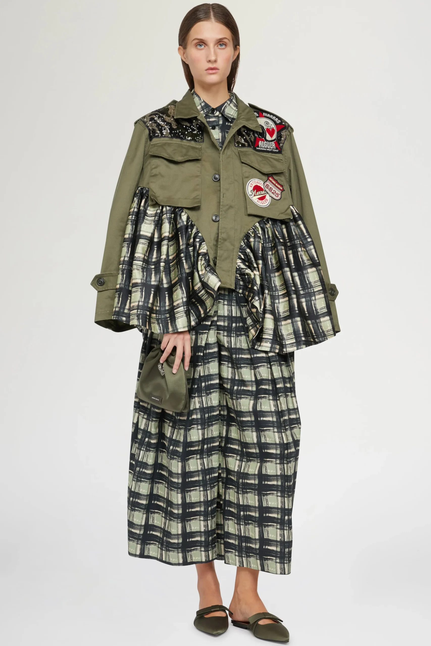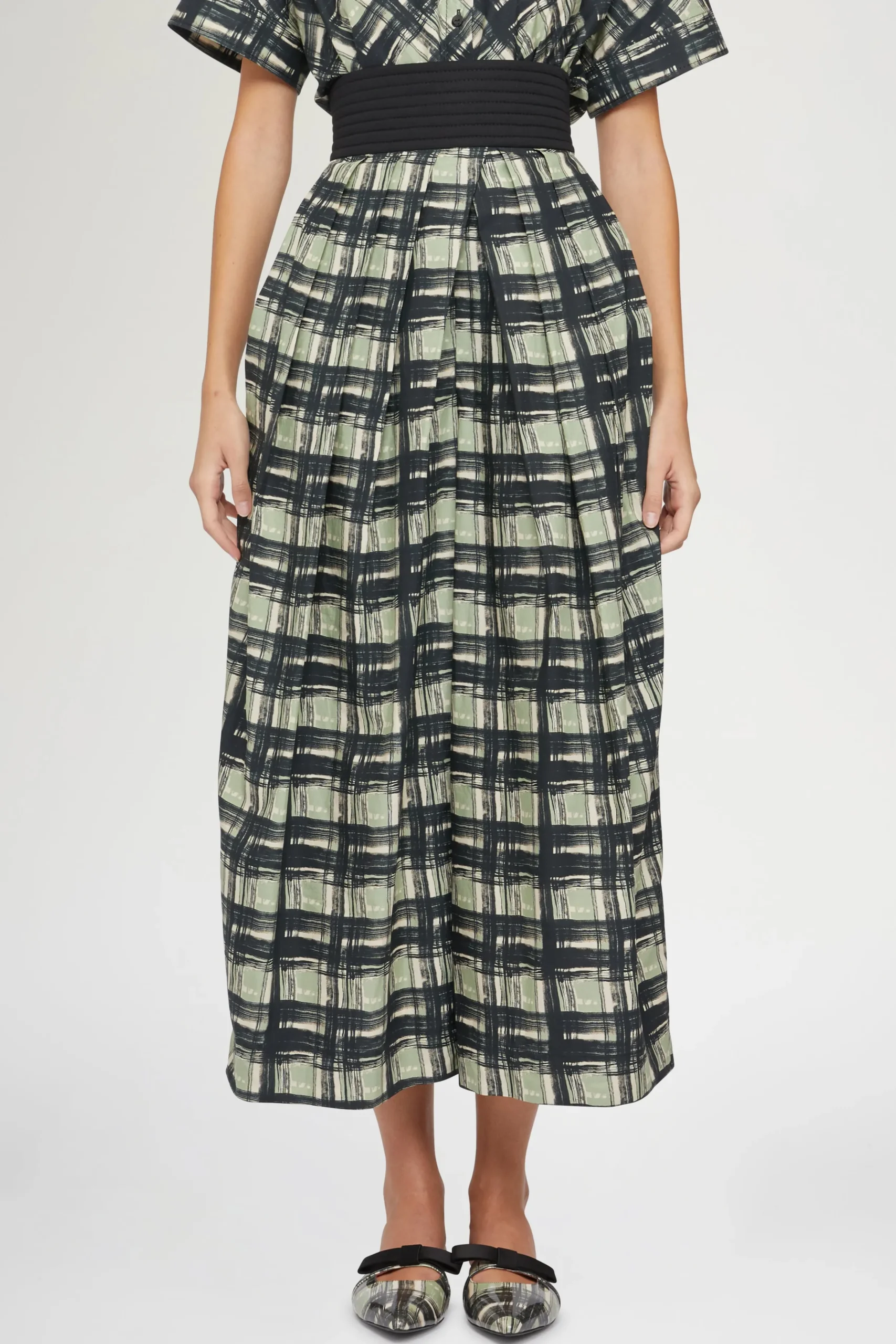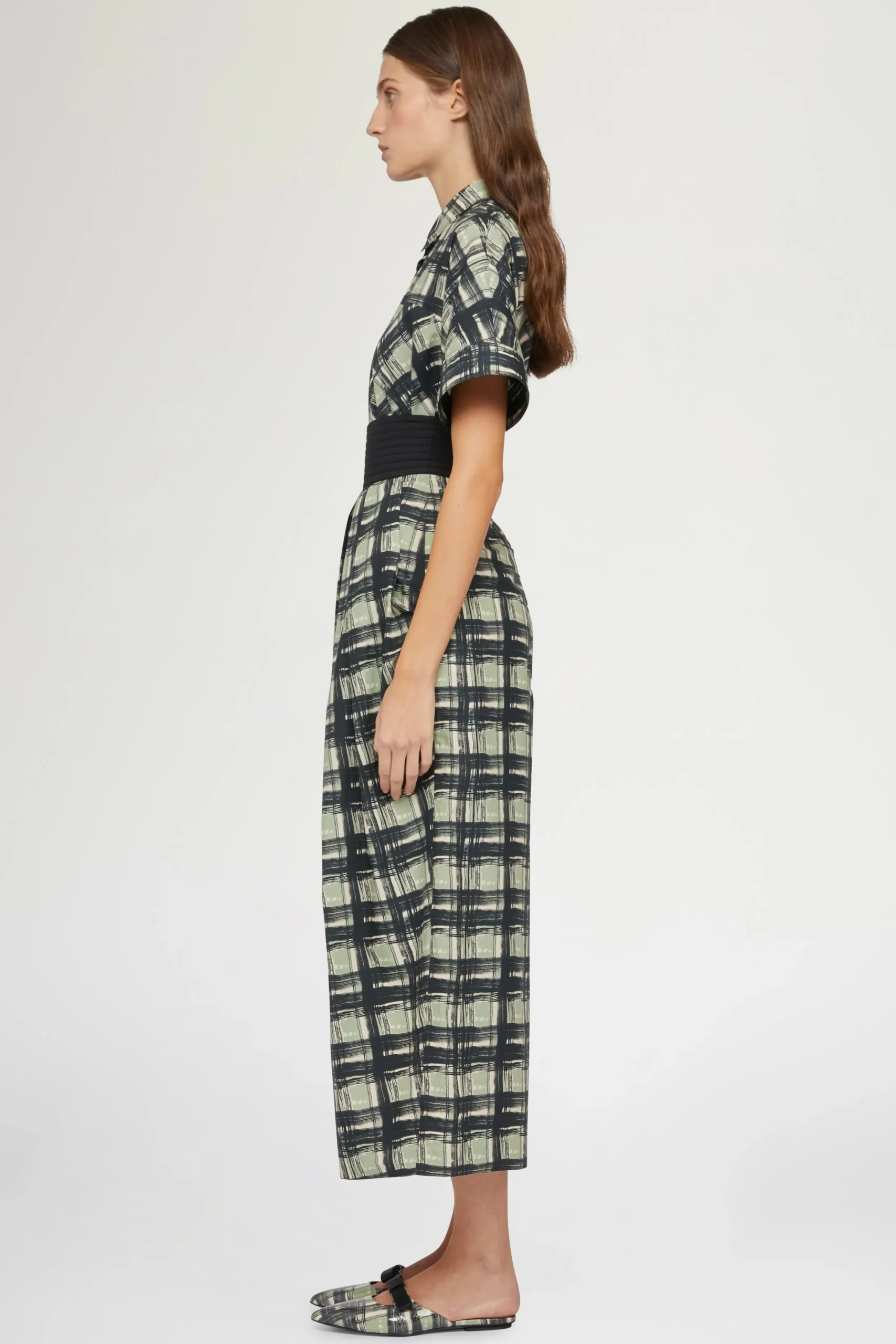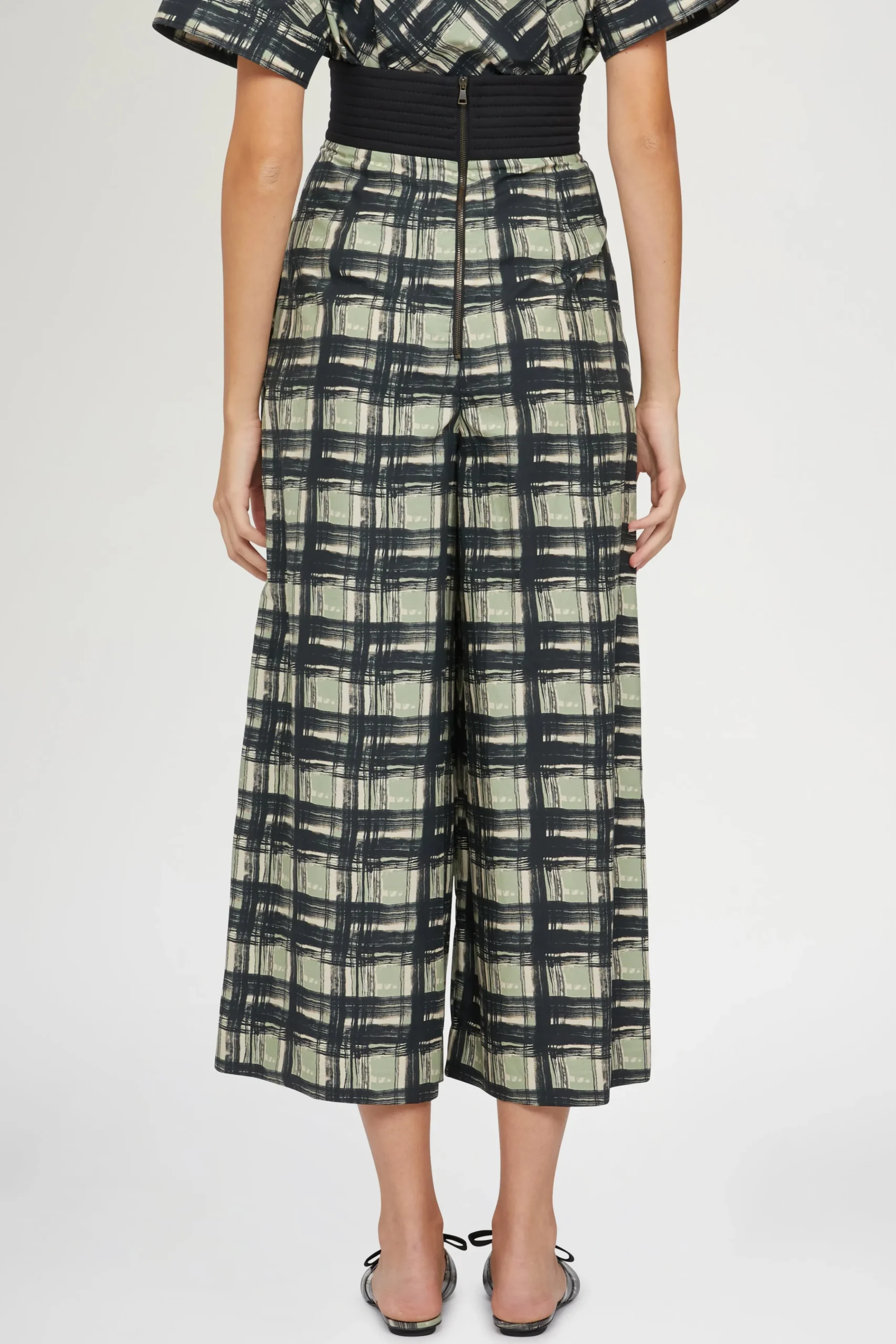 Pantaloni a gamba larga alla caviglia in 100% cotone con un motivo a quadri.