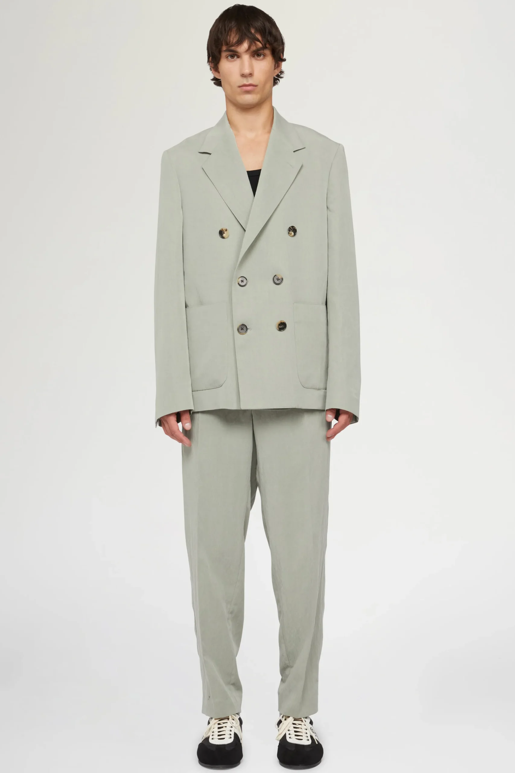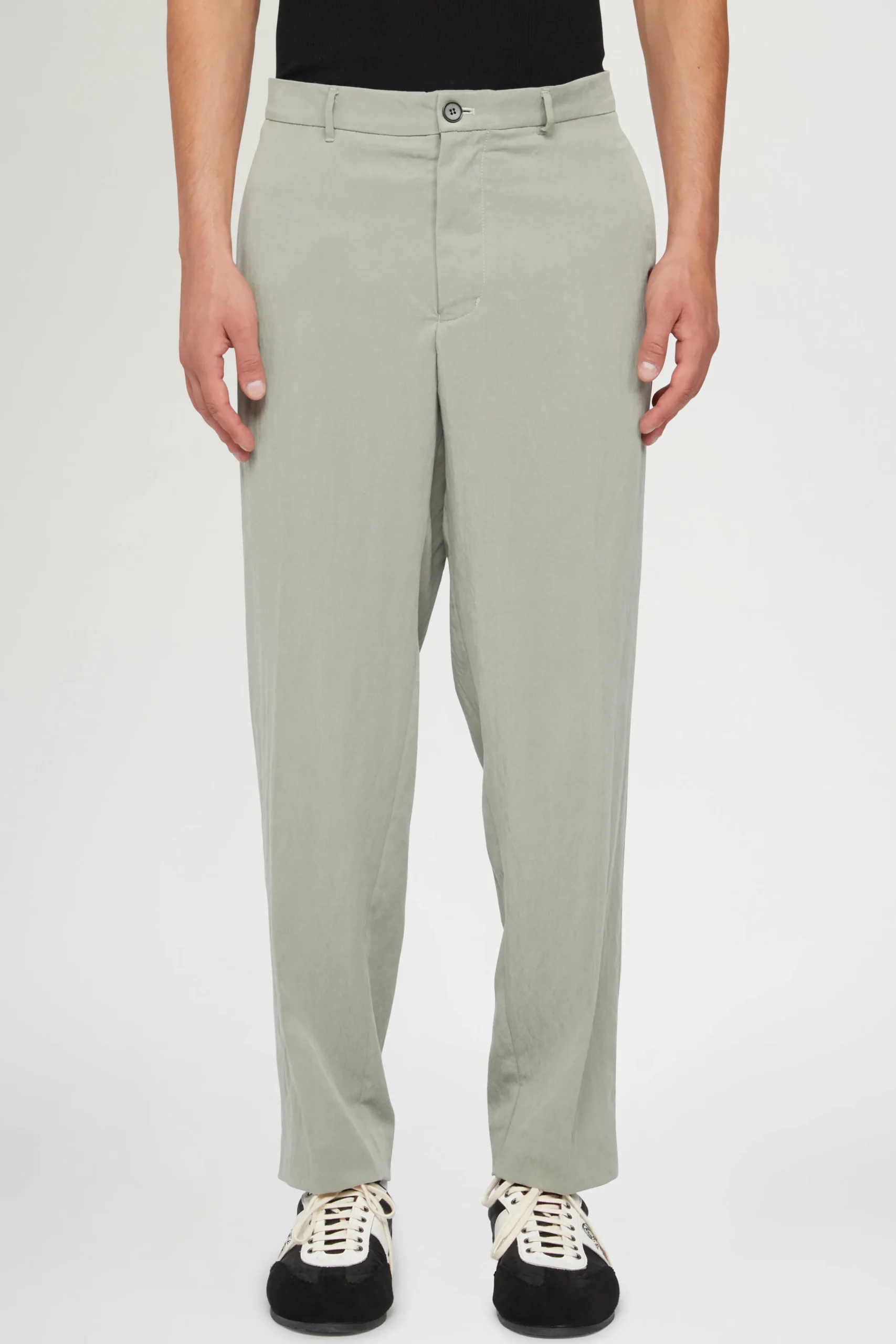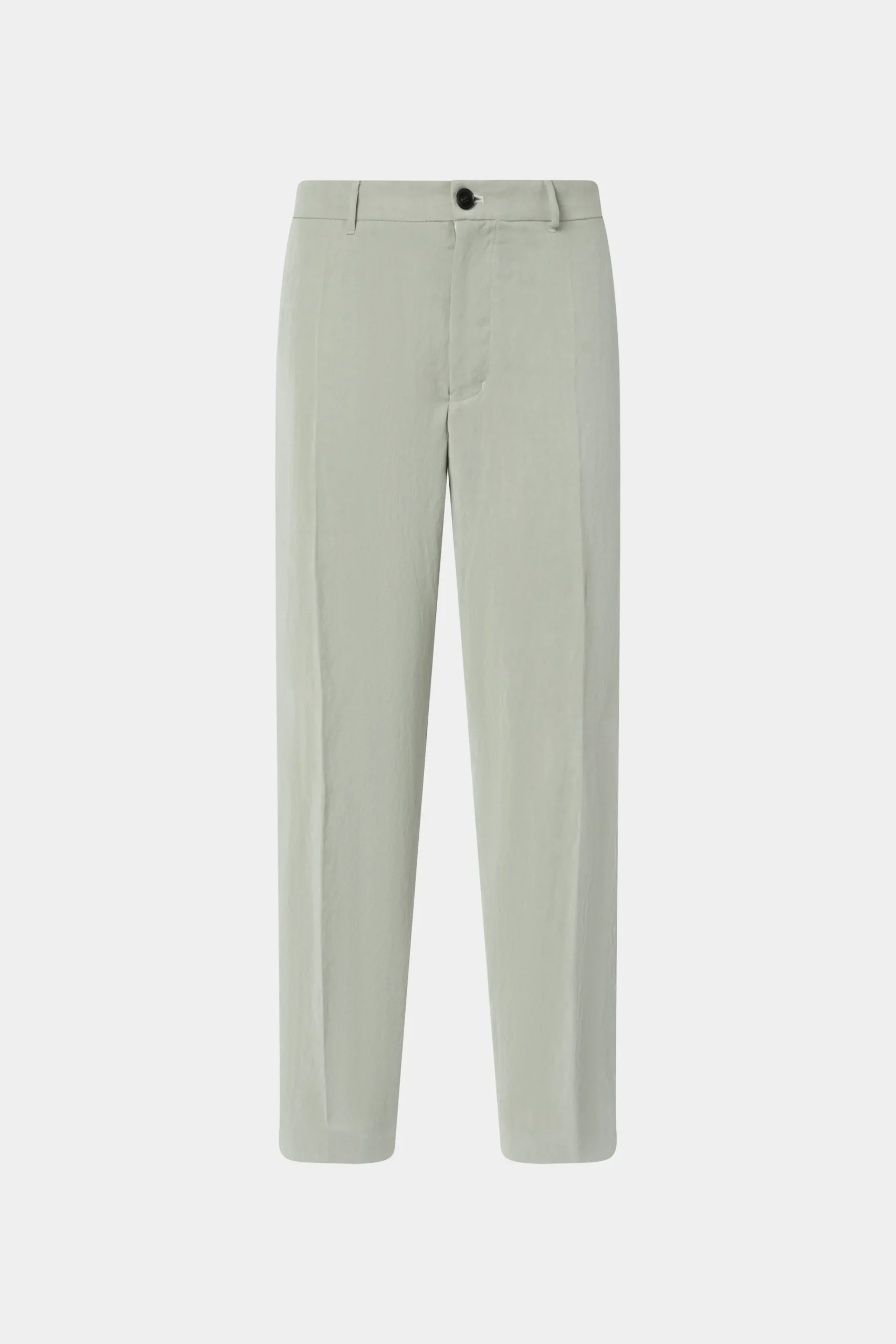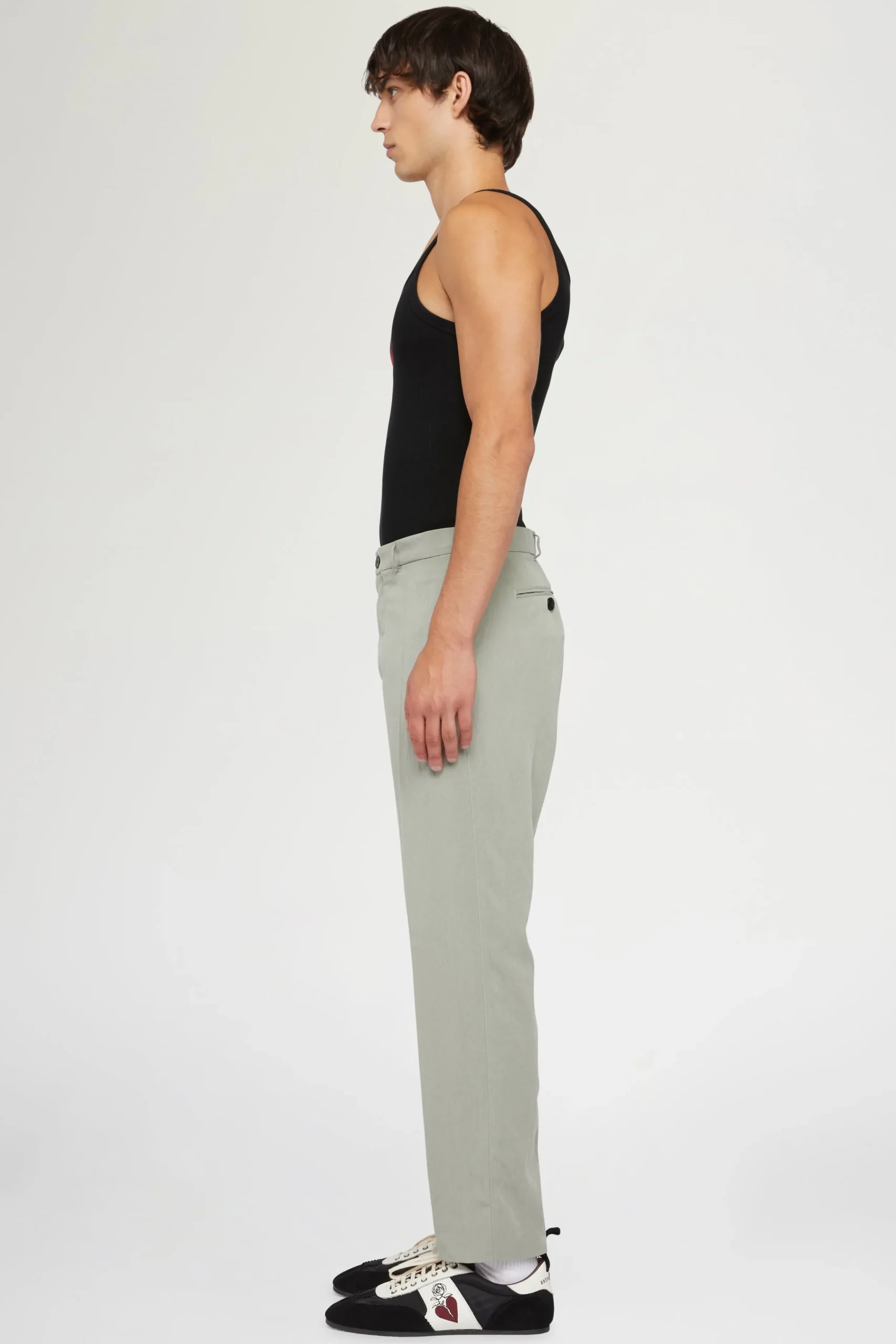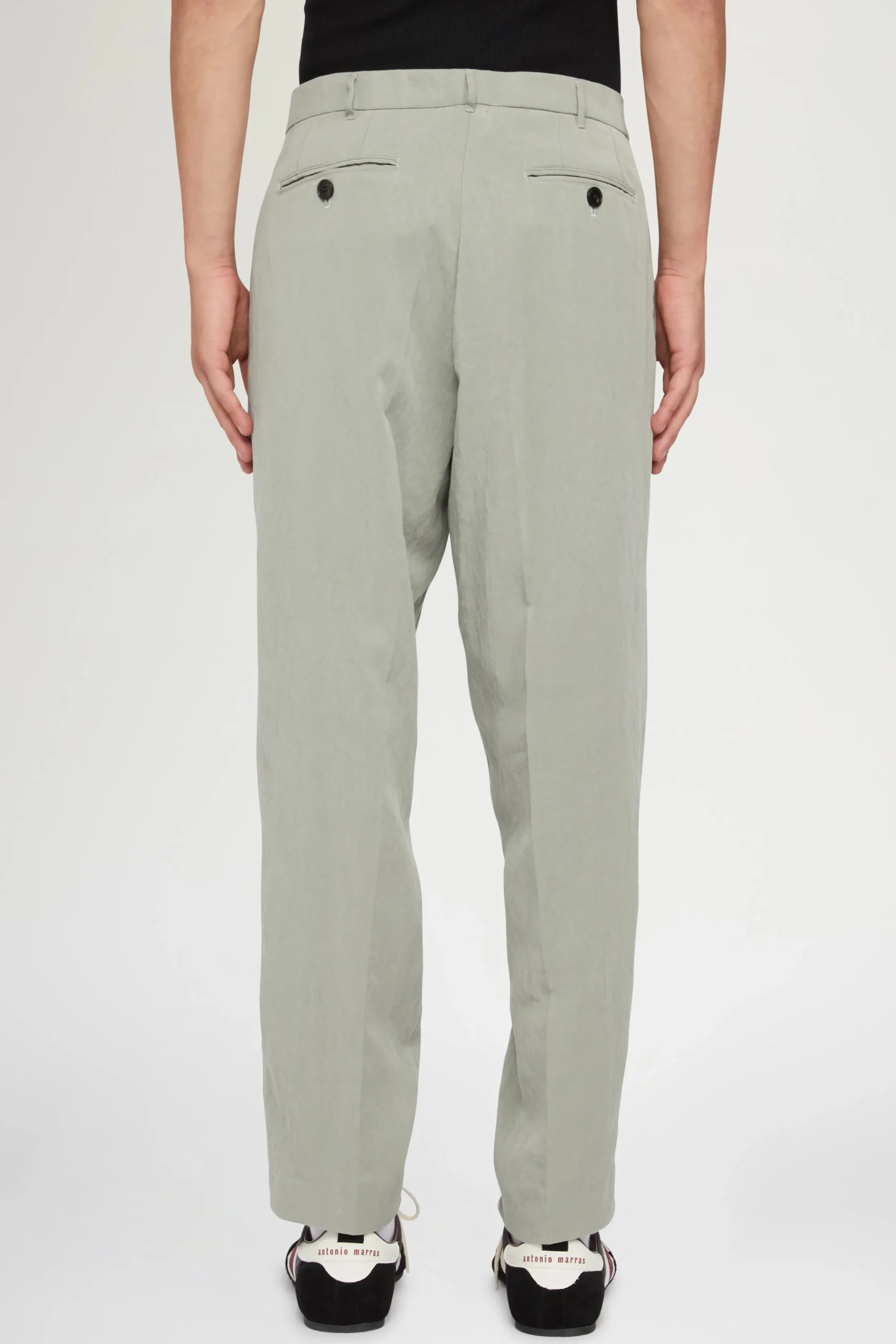 Eleganti pantaloni da uomo verde salvia con vestibilità dritta.