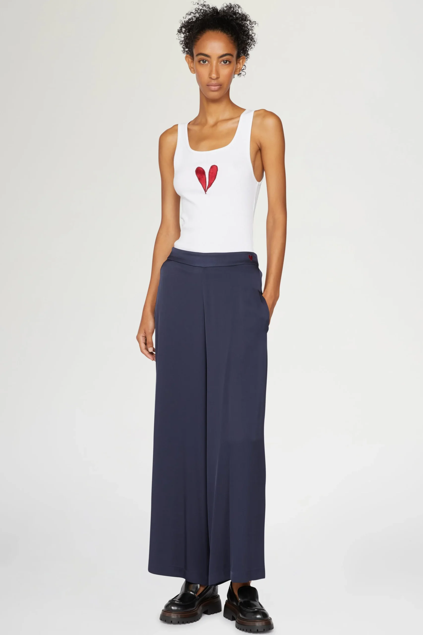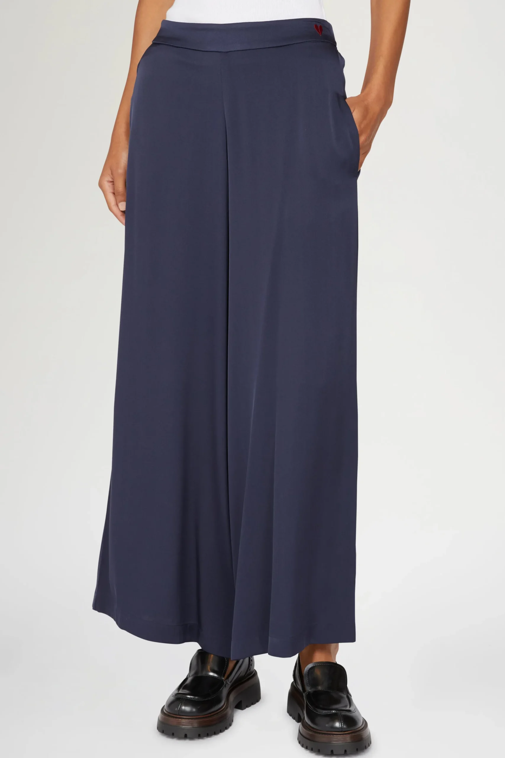 Pantaloni larghi blu realizzati in tessuto misto seta.