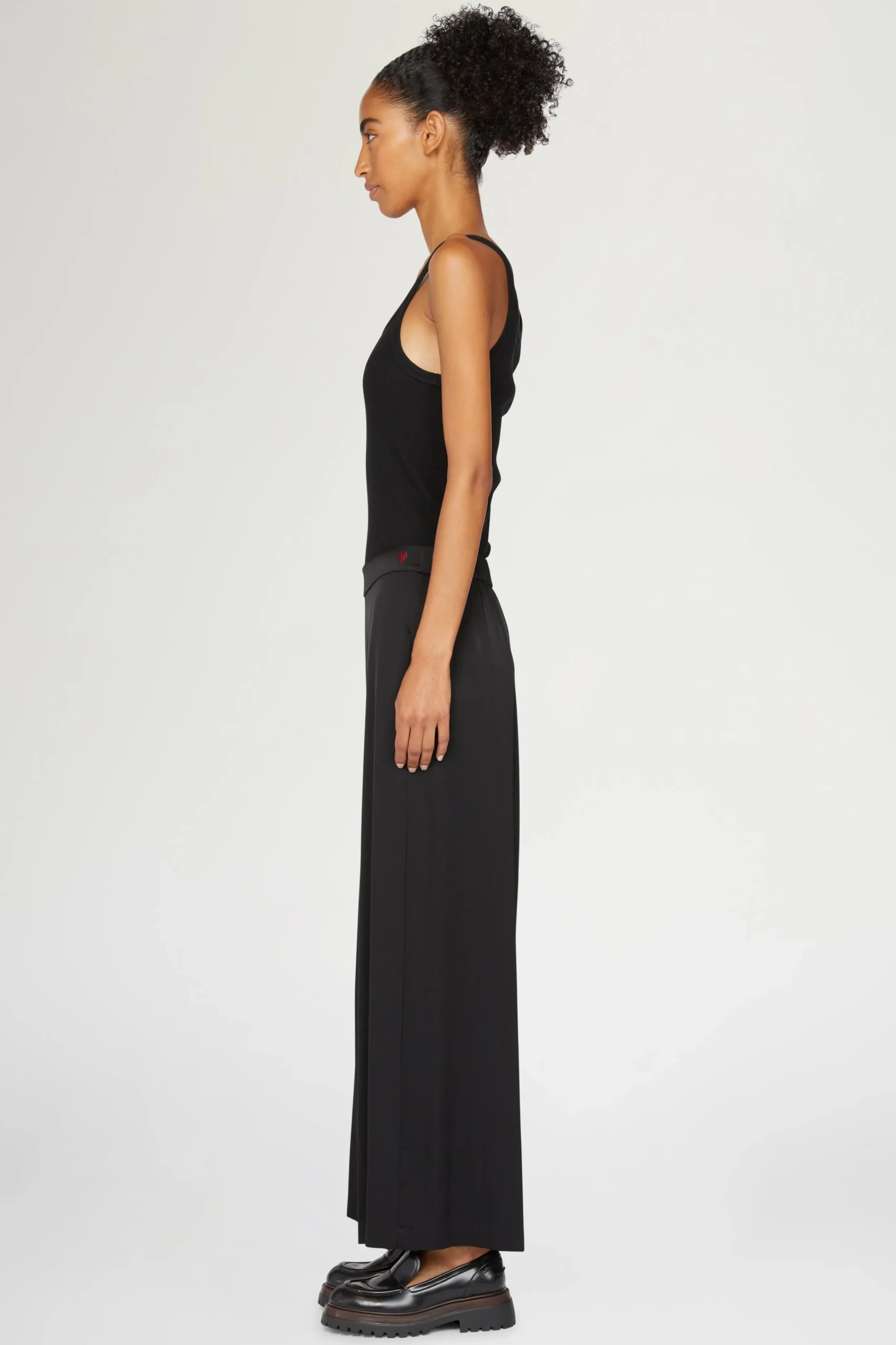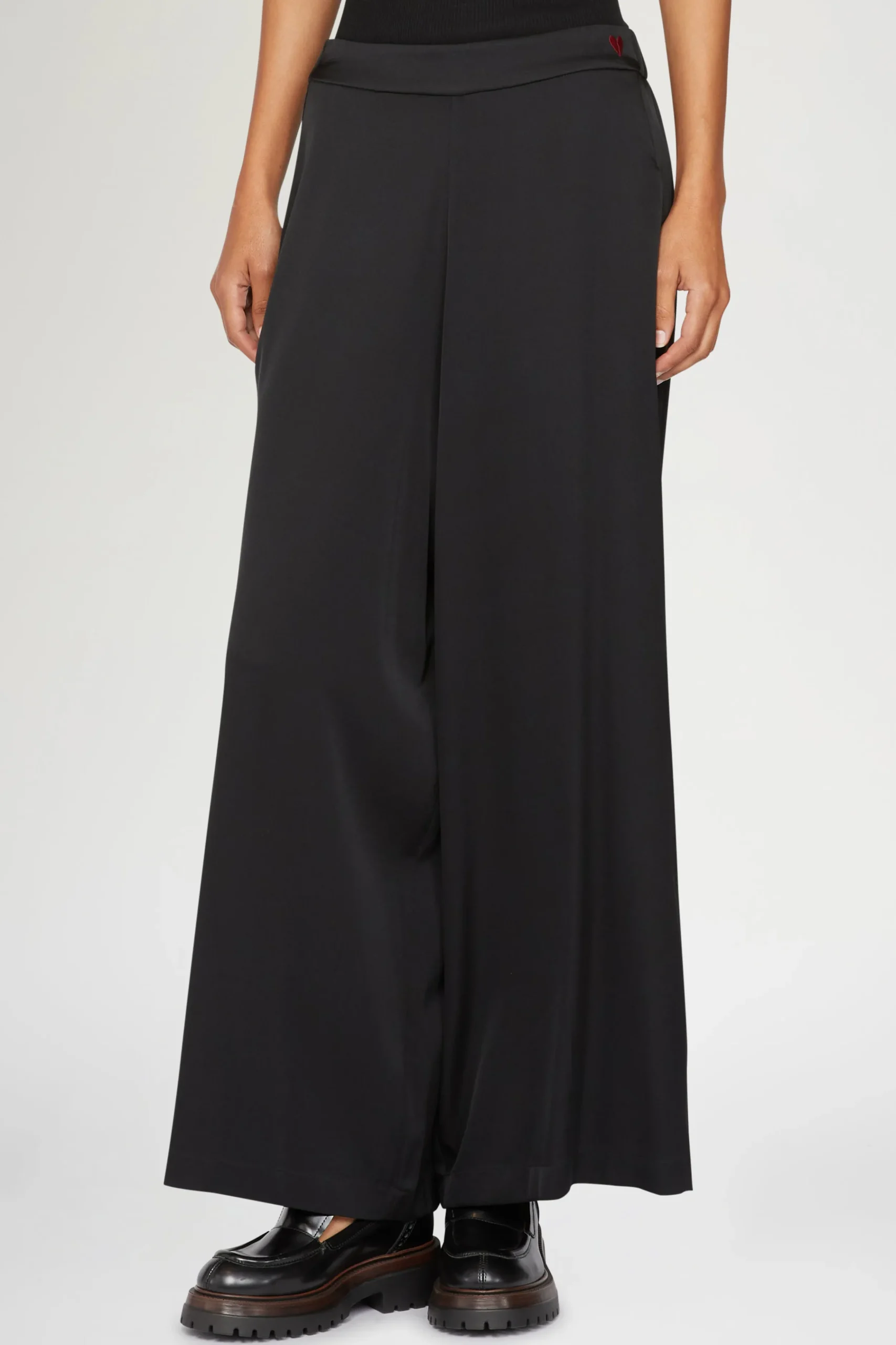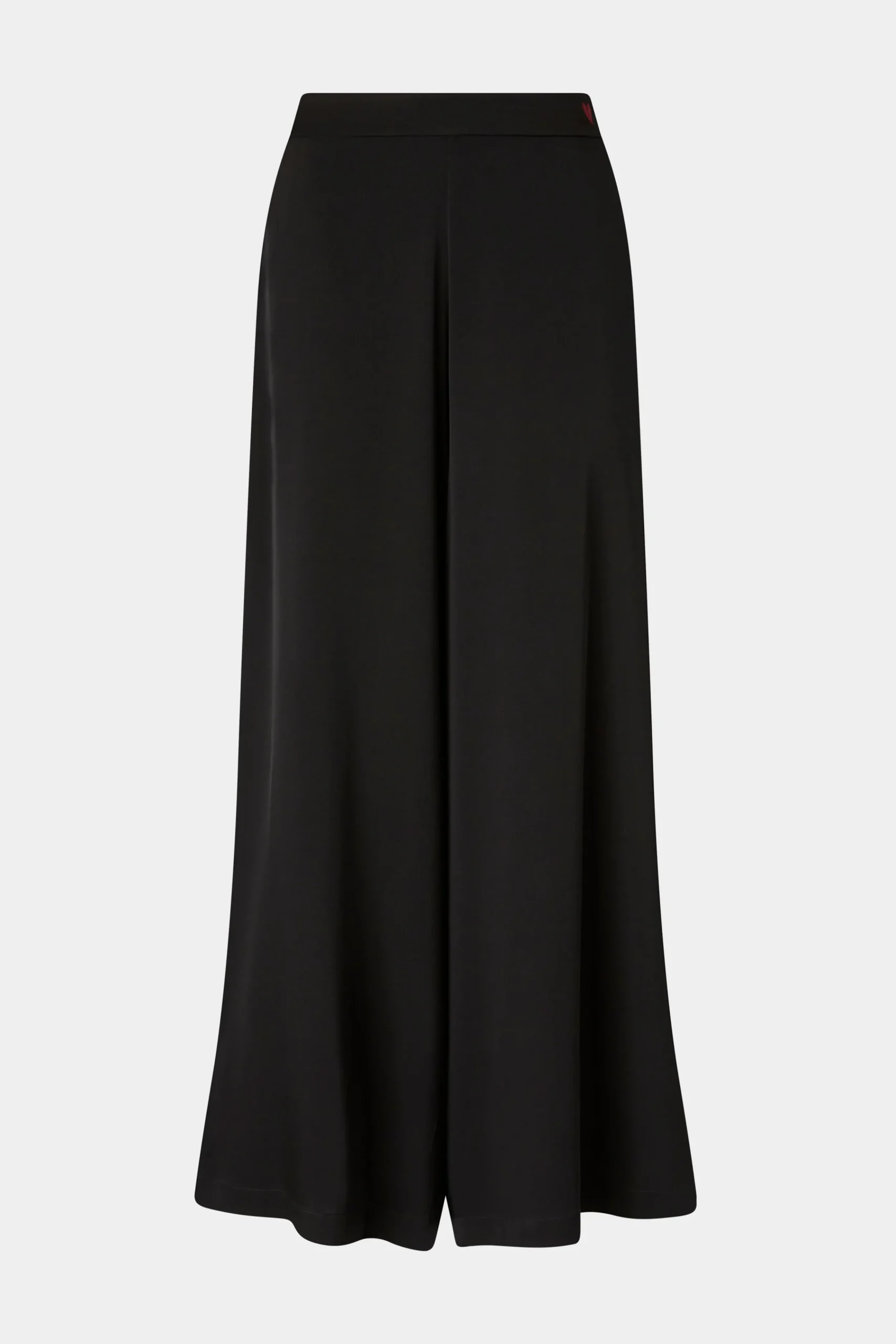 Pantaloni larghi neri realizzati in tessuto misto seta.
