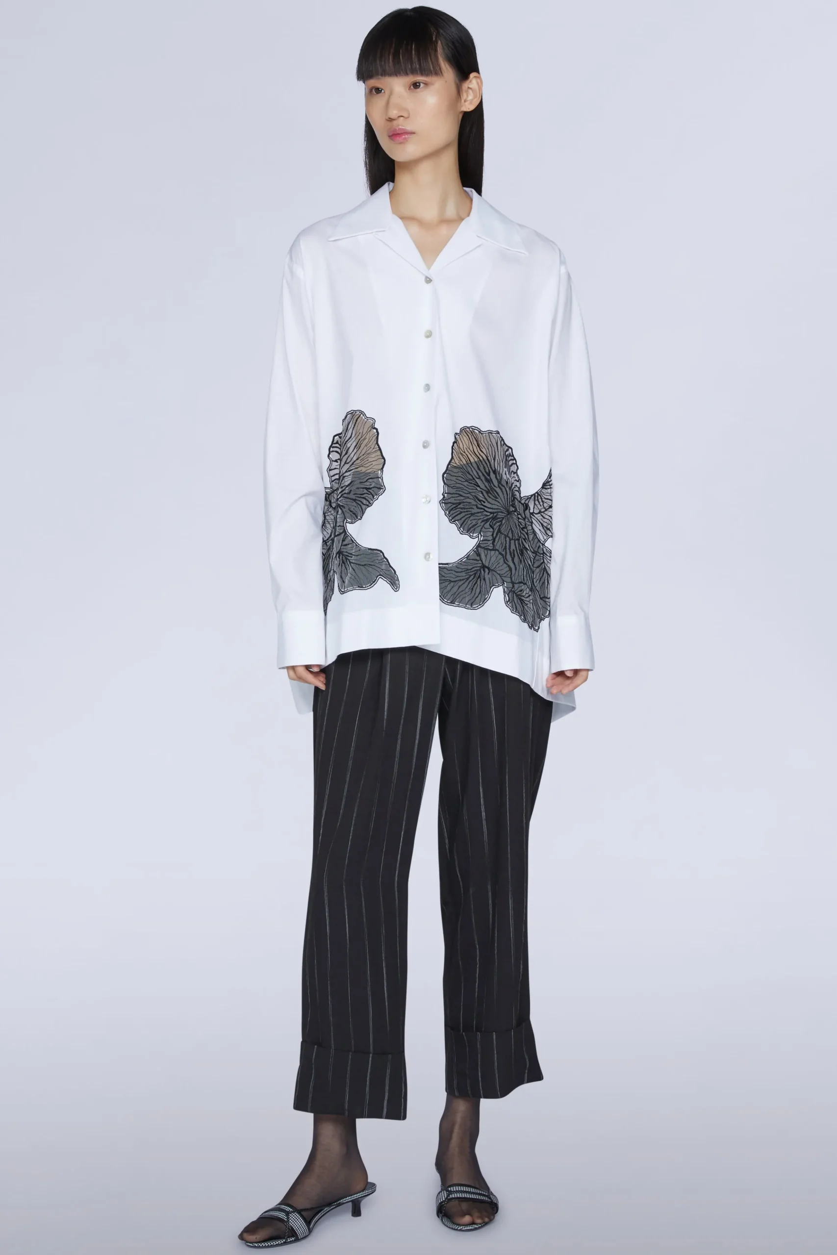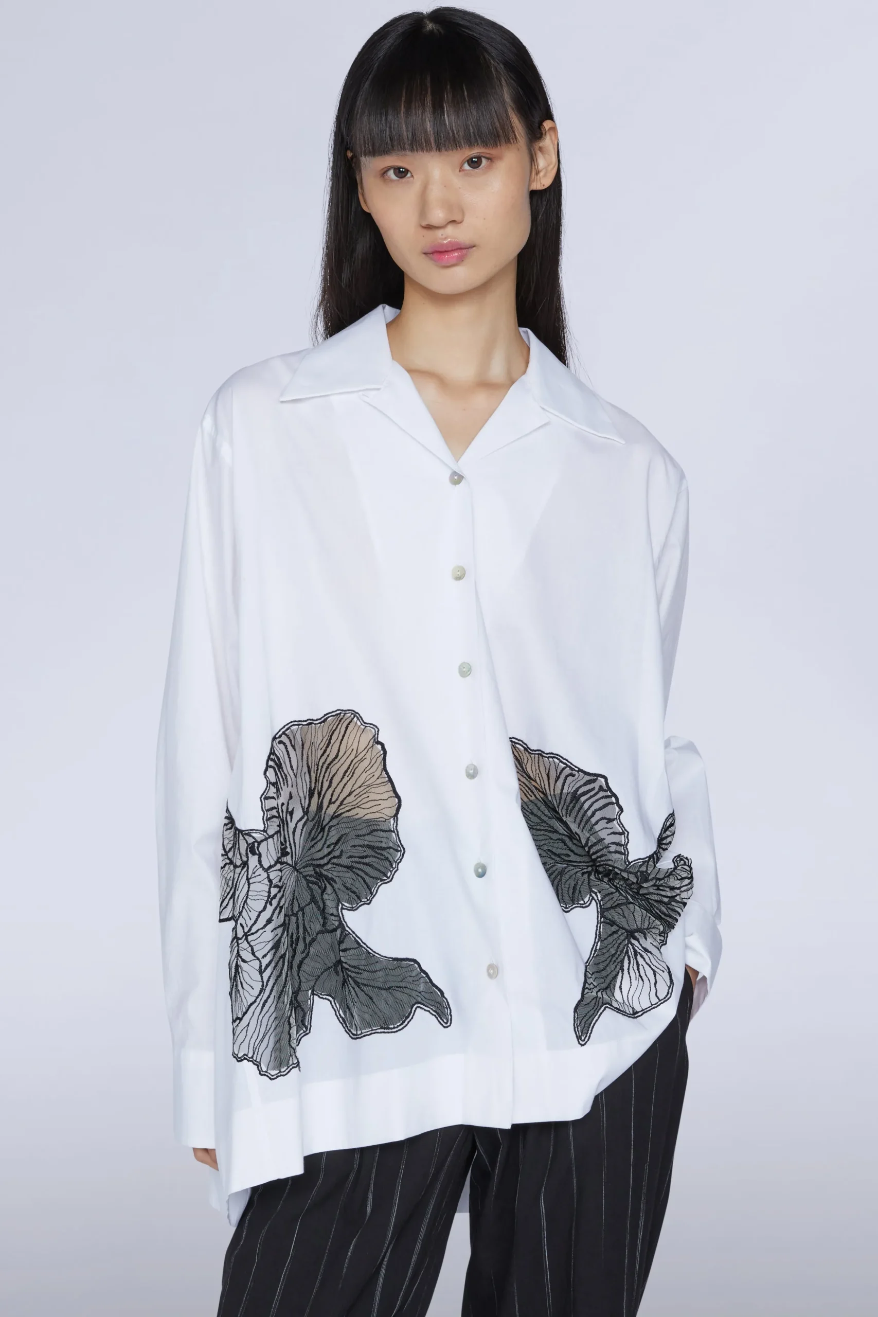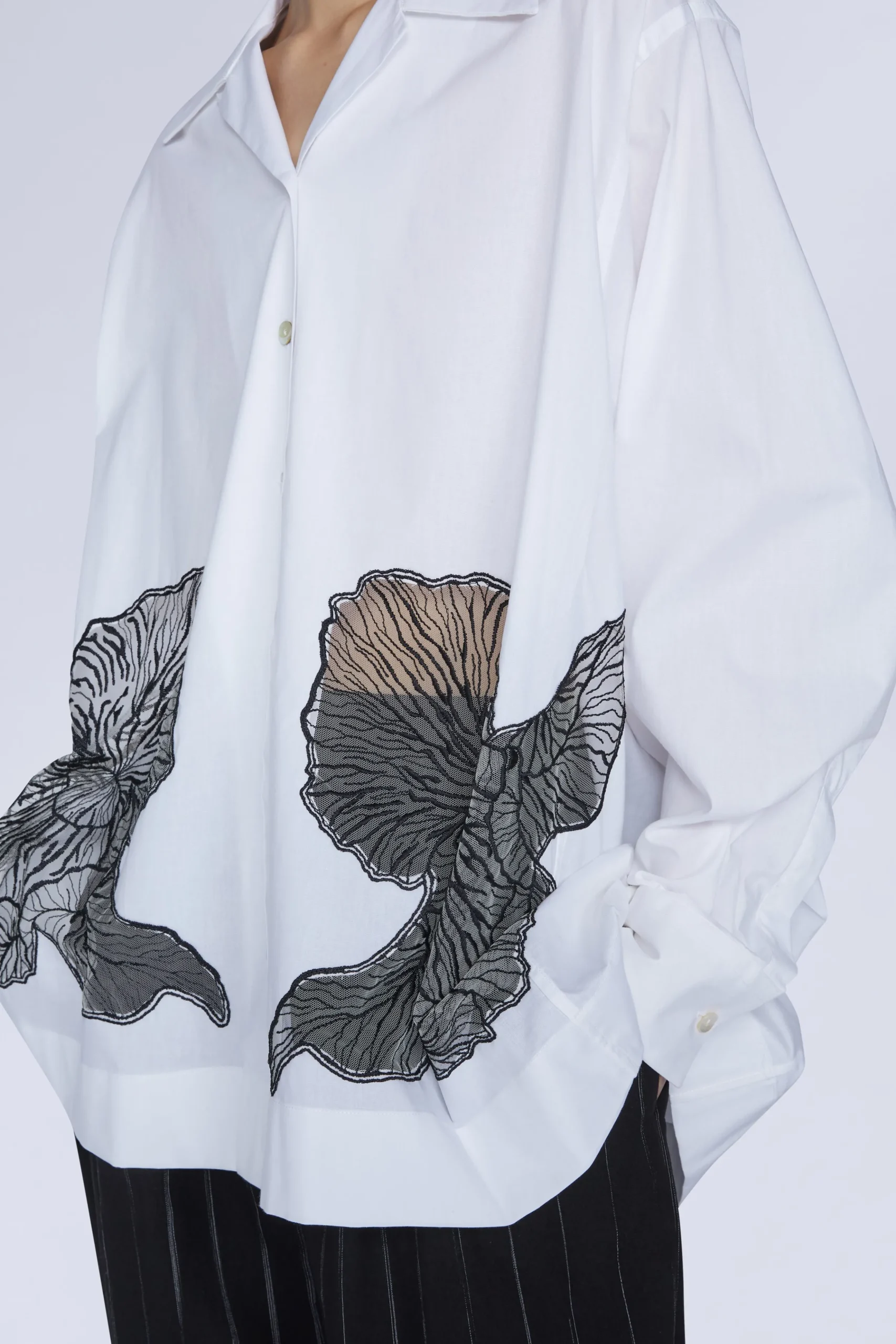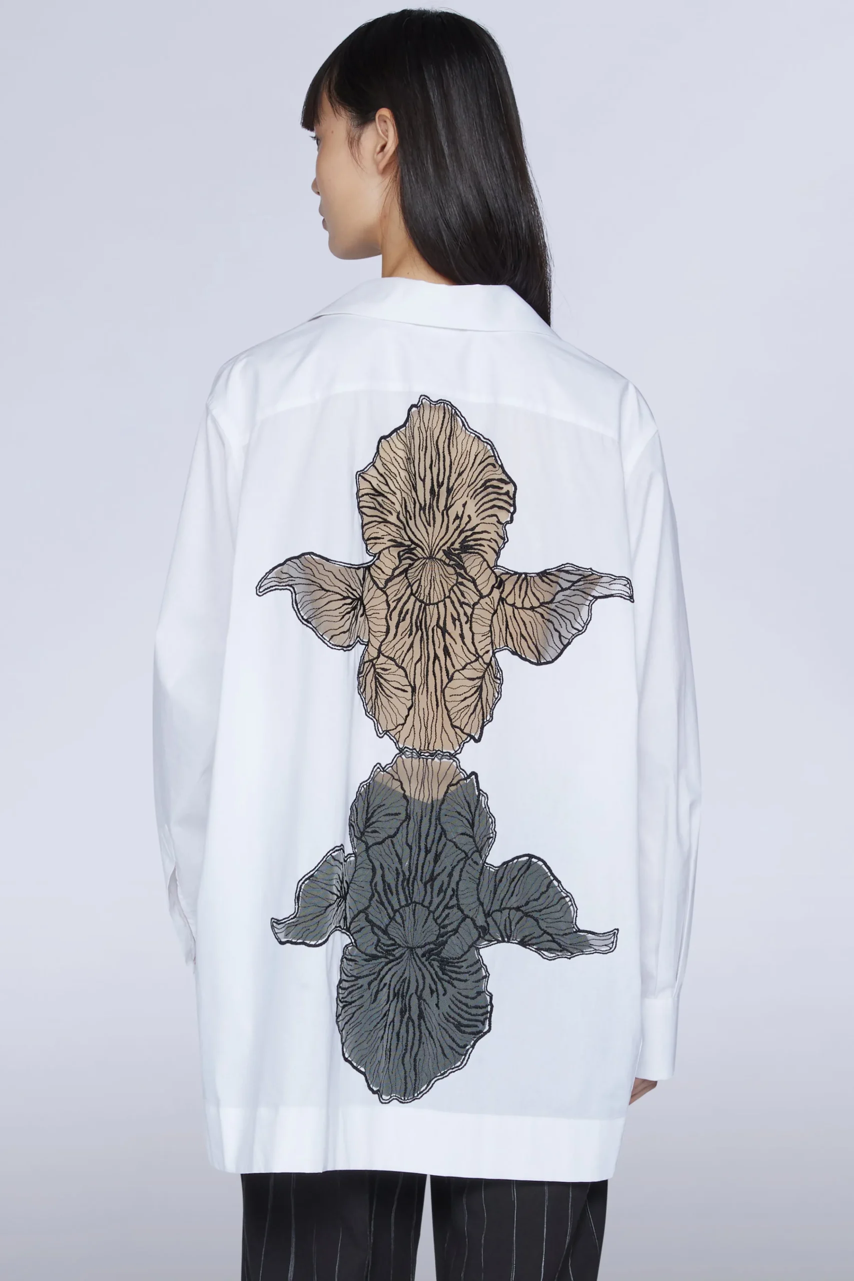 Camicia bianca in 100% cotone con maxi ricami sul davanti e sul retro.