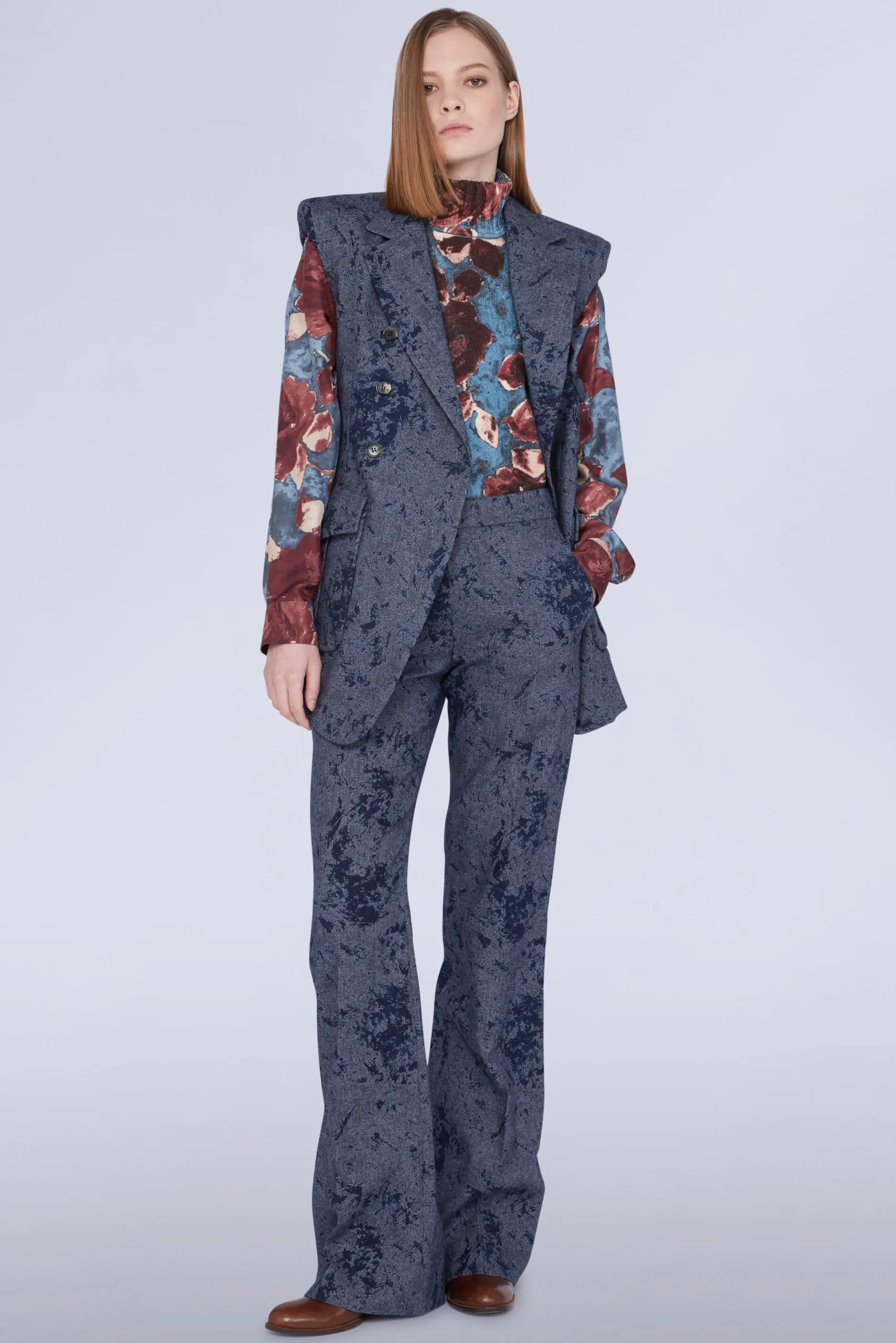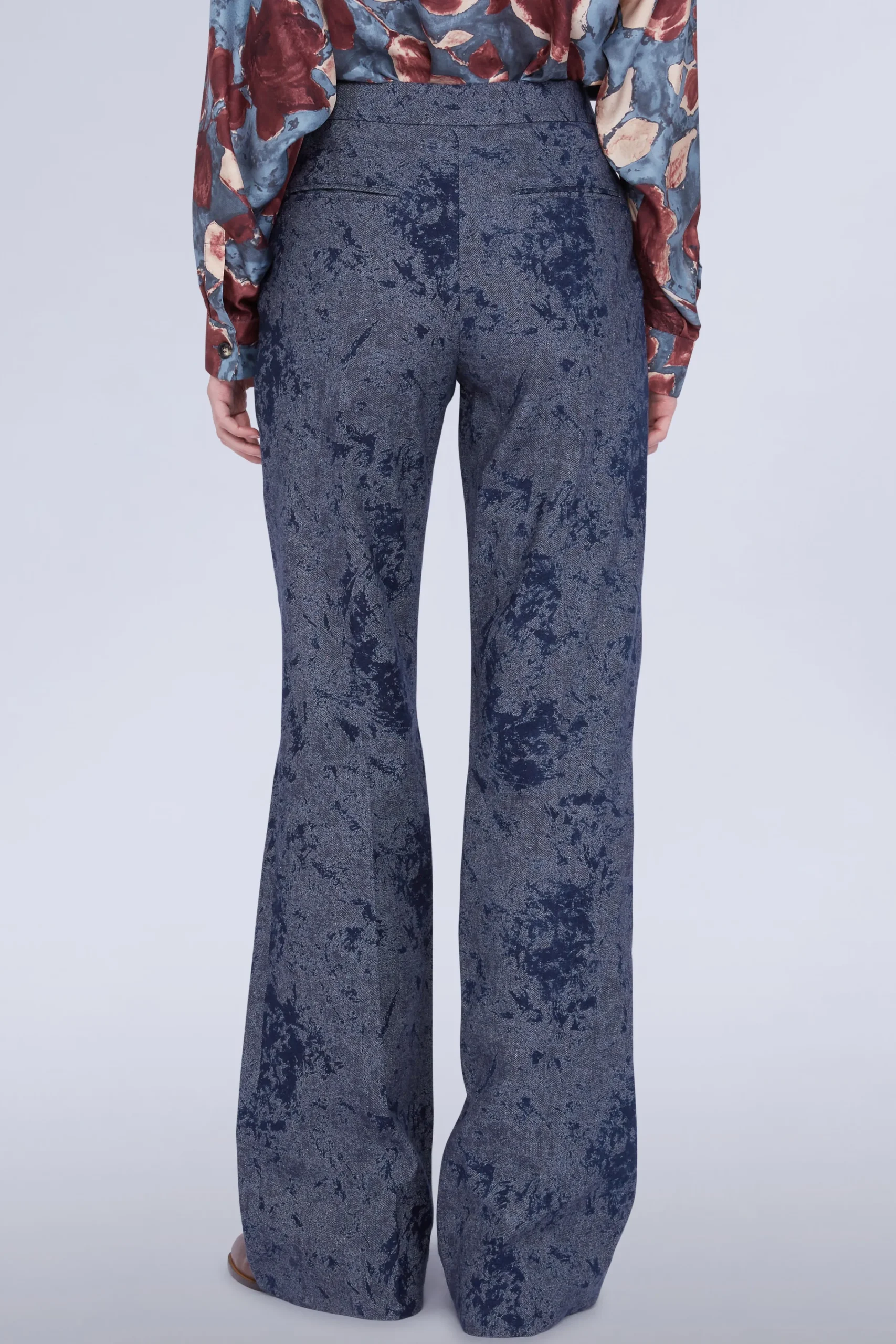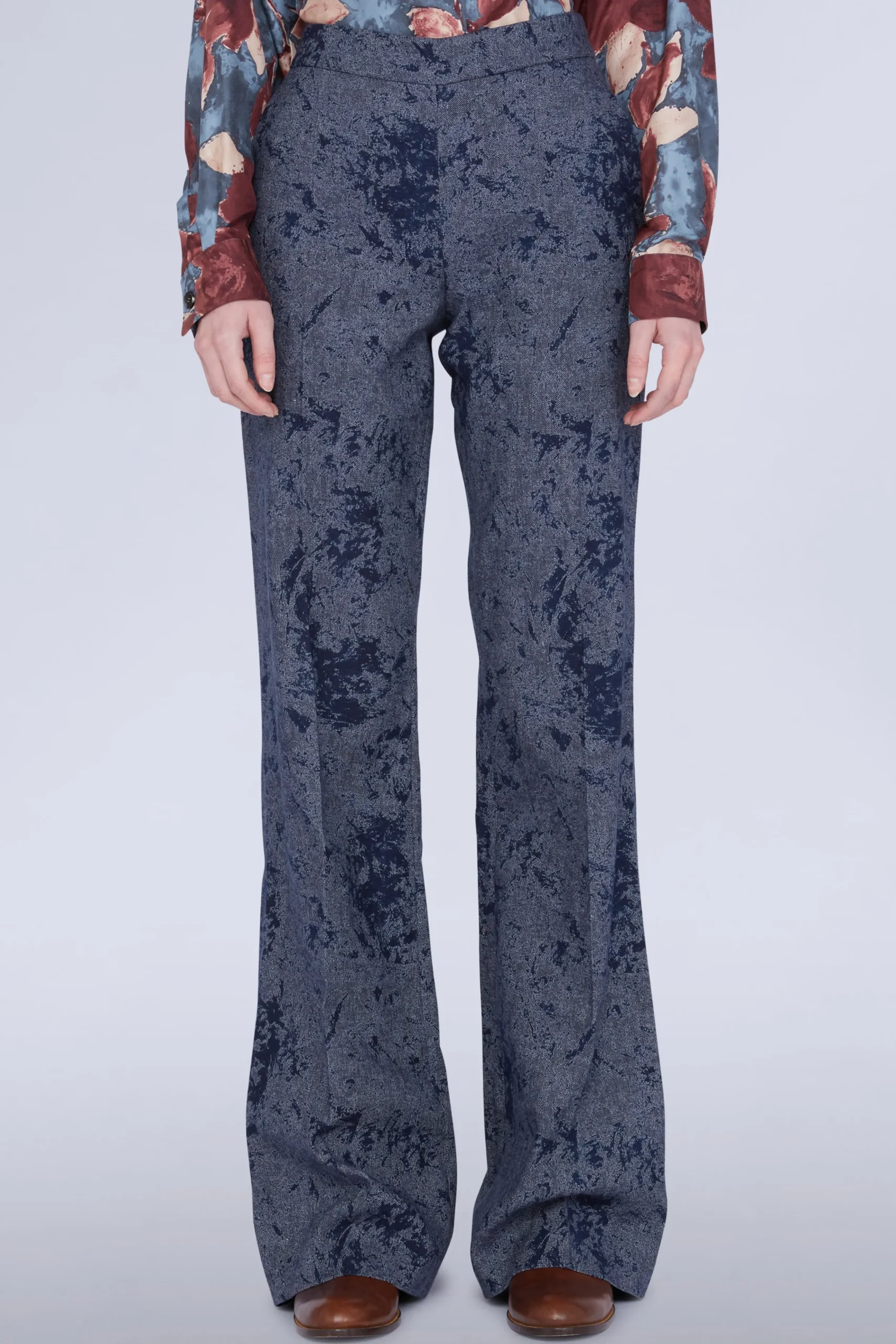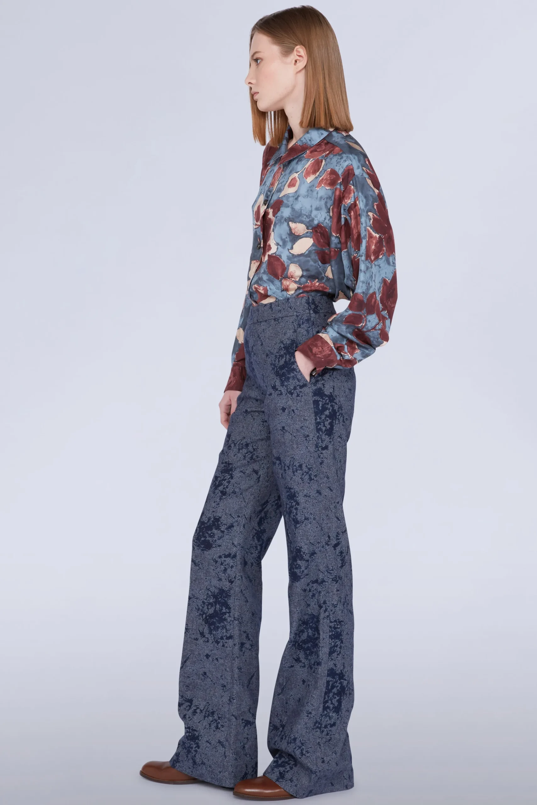 Pantaloni palazzo a vita alta con tasche laterali.