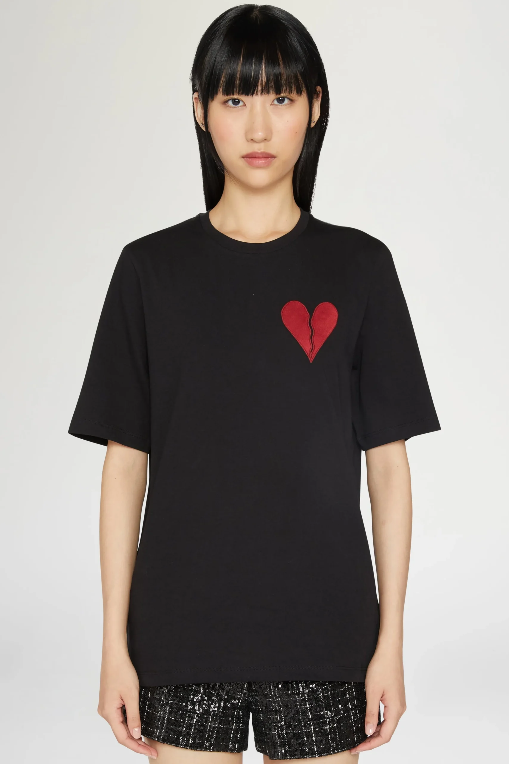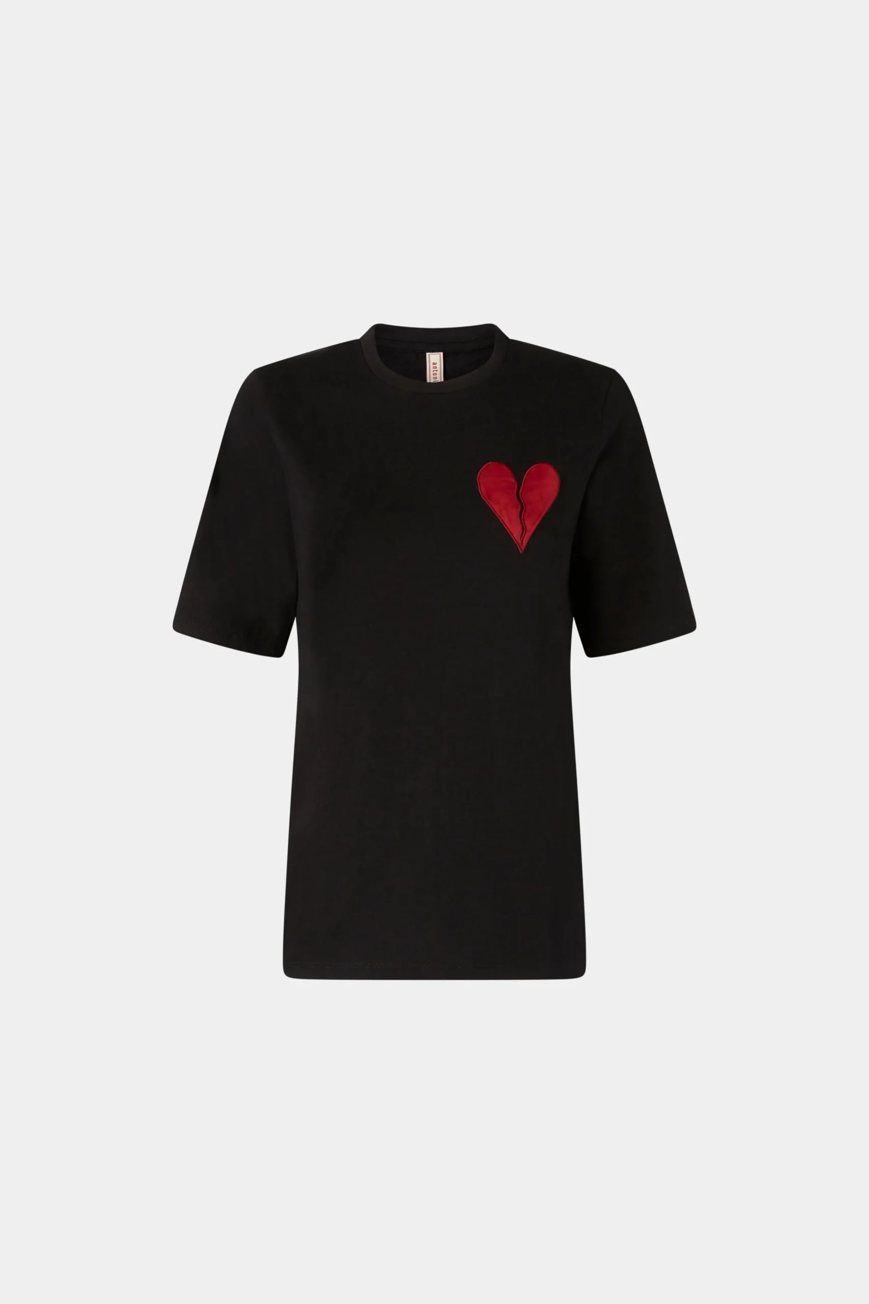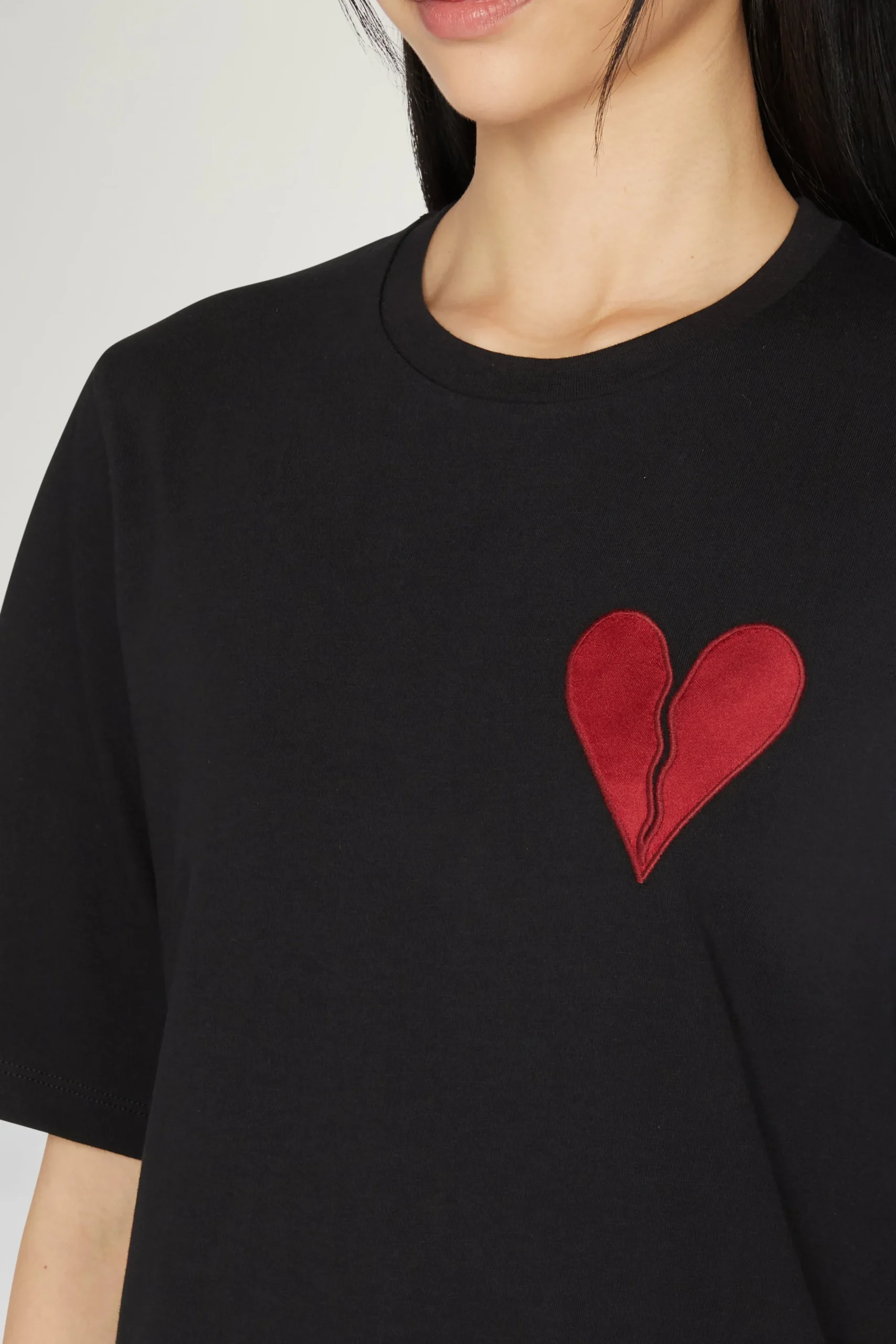 T-shirt nera unisex in 100% cotone con cuore spezzato.
